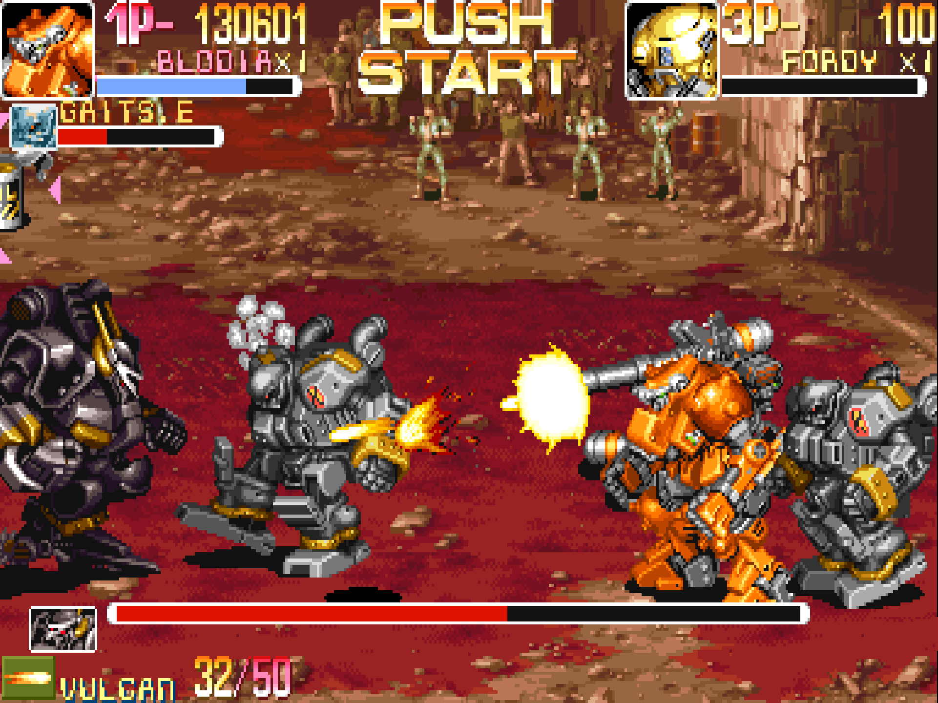 - Stages: 7 intense missions featuring enemy mechs, tanks, and giant bosses.