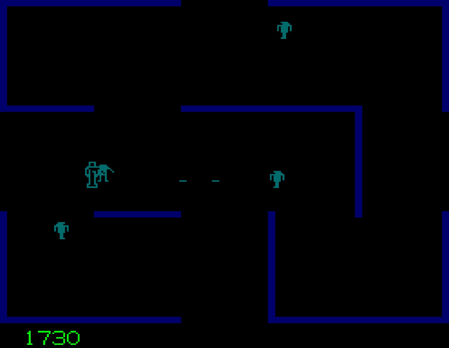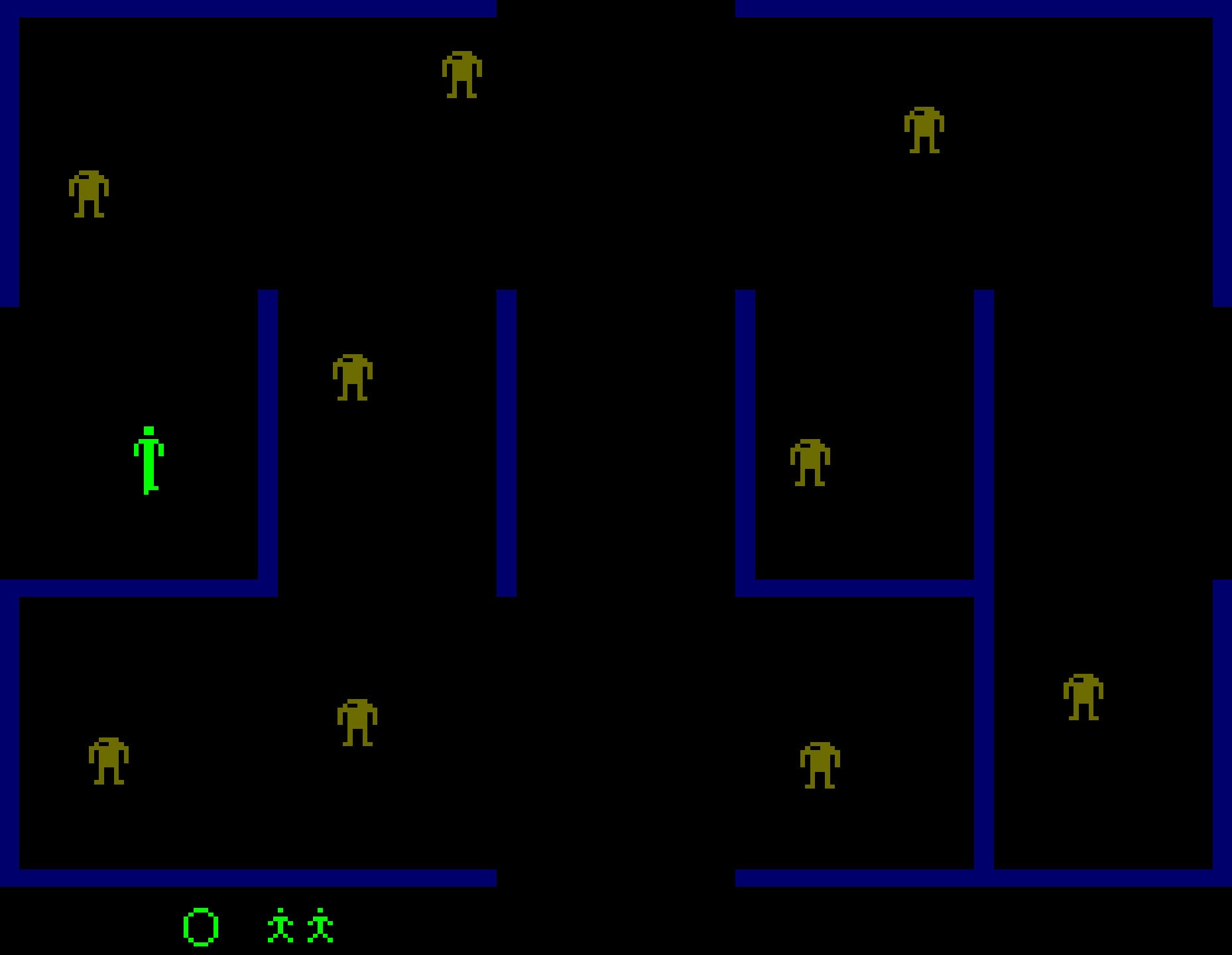 - Maze Exploration: Players navigate through interconnected rooms filled with hostile robots.