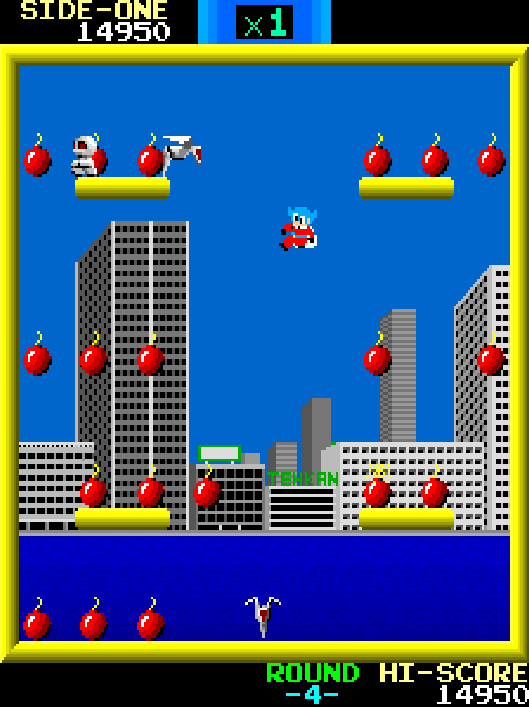 - Objective: Collect all the bombs on-screen while avoiding enemies.