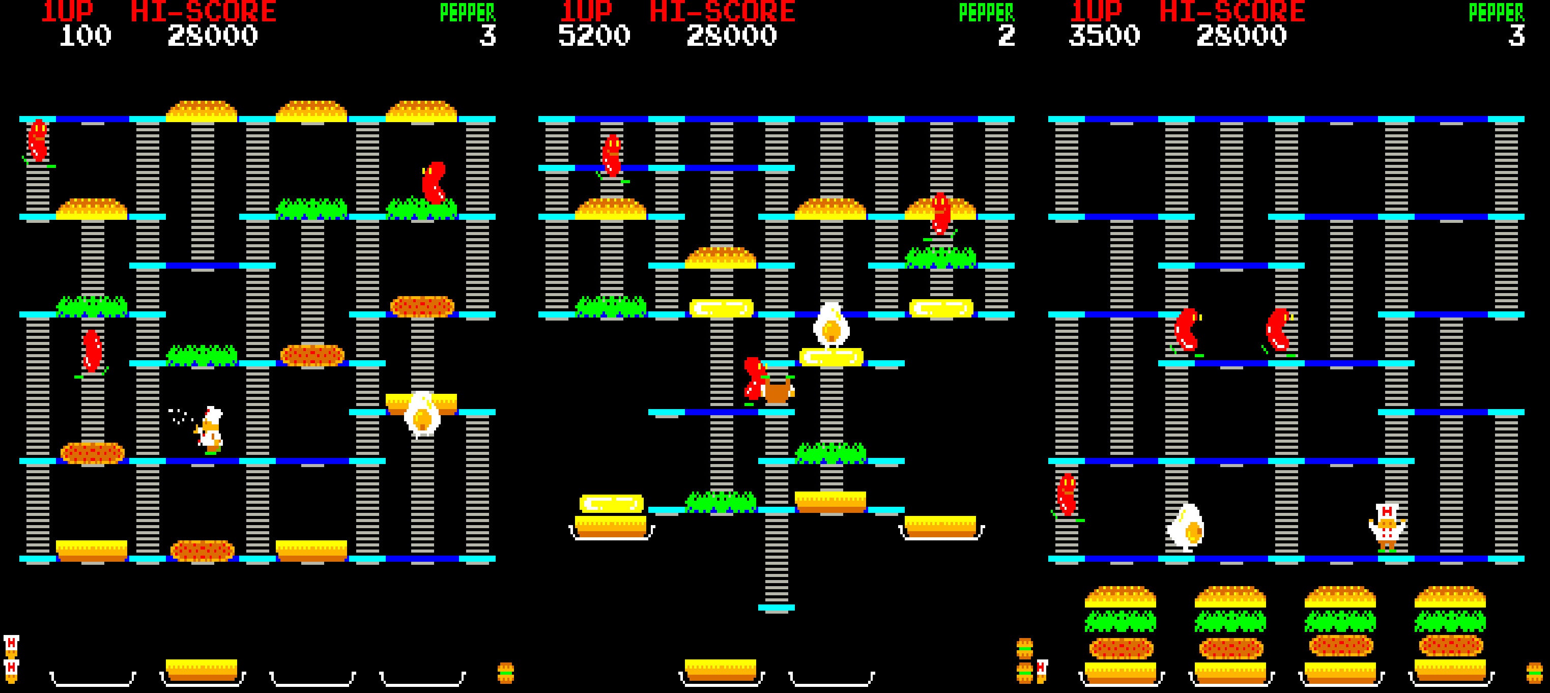 - Multilayer Strategy: Players had to plan their moves carefully to complete levels, using strategies to lure enemies and drop burger components effectively.
