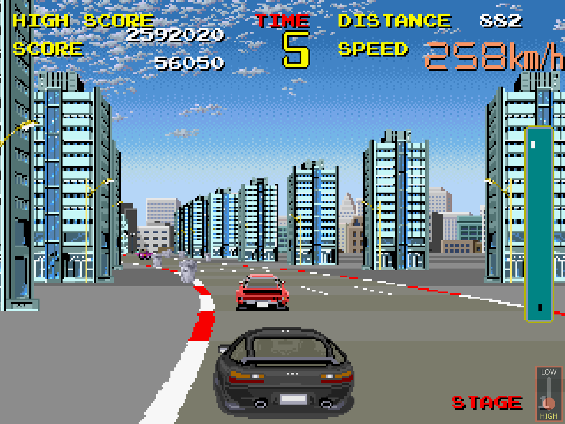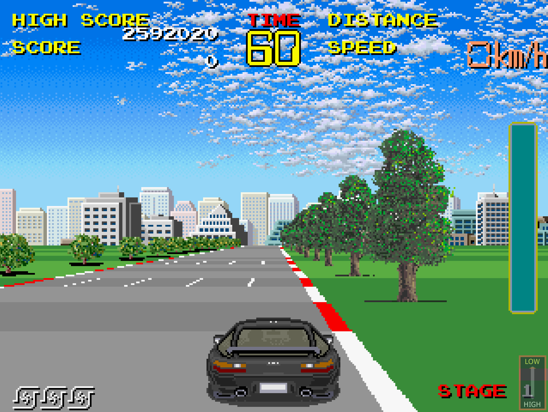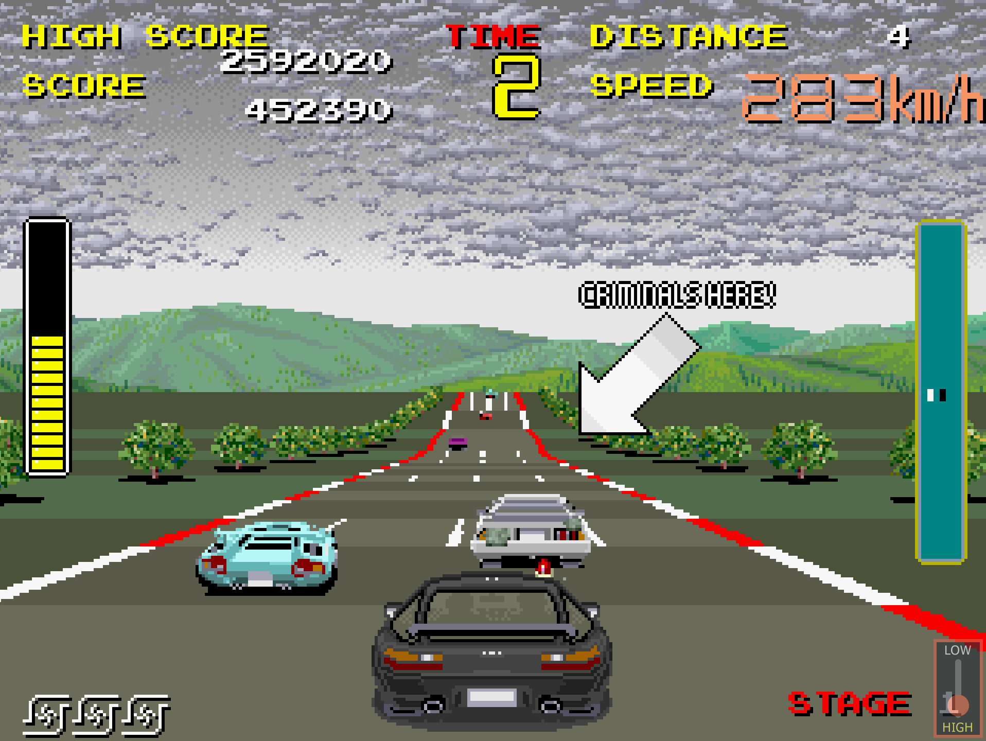 Designed during a period when arcade racers were evolving from circuit-style formats into more narrative-driven games, Chase H.Q. brought a unique hook: chase down criminals, ram their cars off the road, and save the day. The development team implemented sprite scaling and parallax scrolling to create the illusion of 3D road depth, similar to what Sega had done with Out Run, but with its own action-packed police twist.