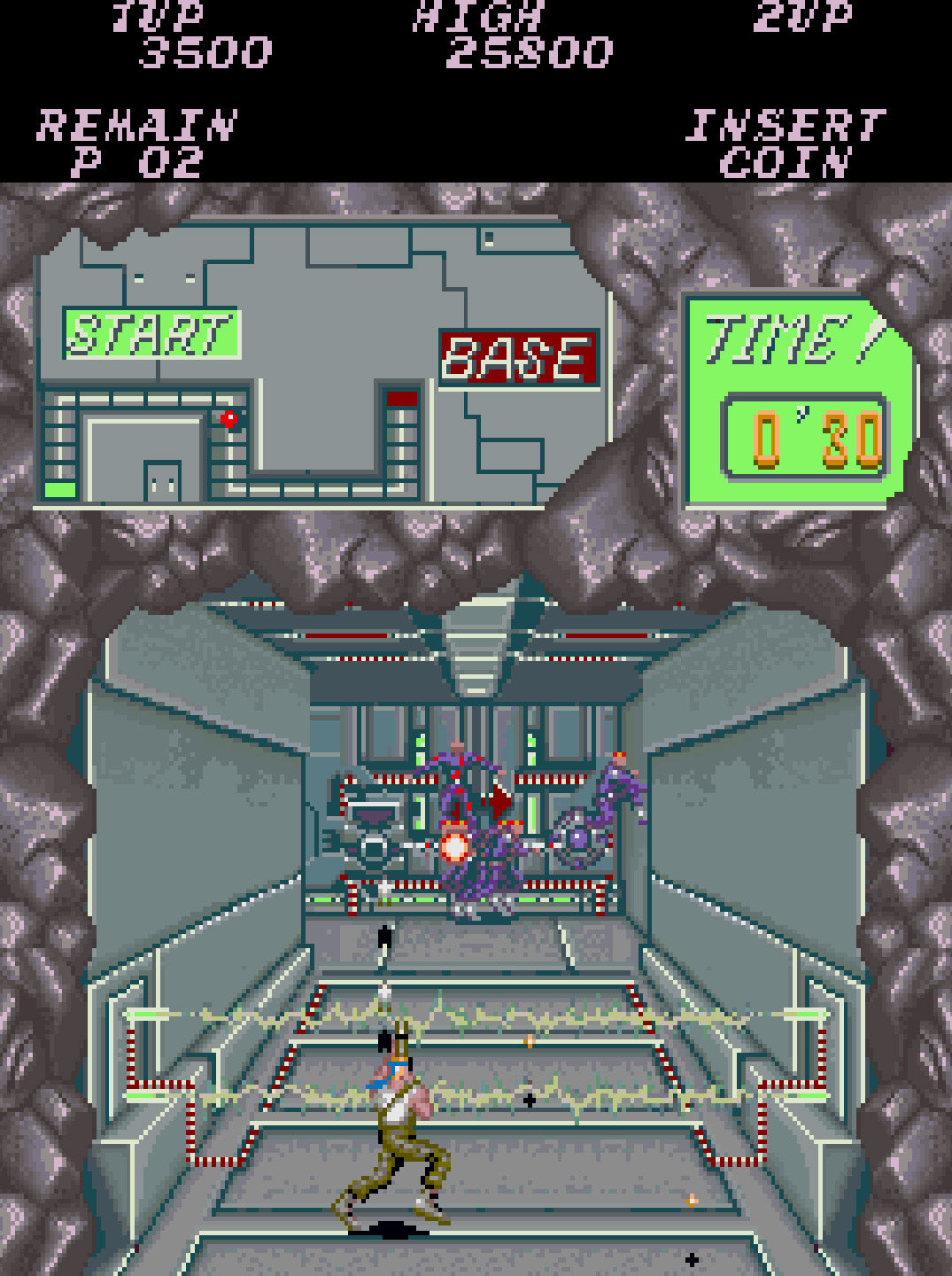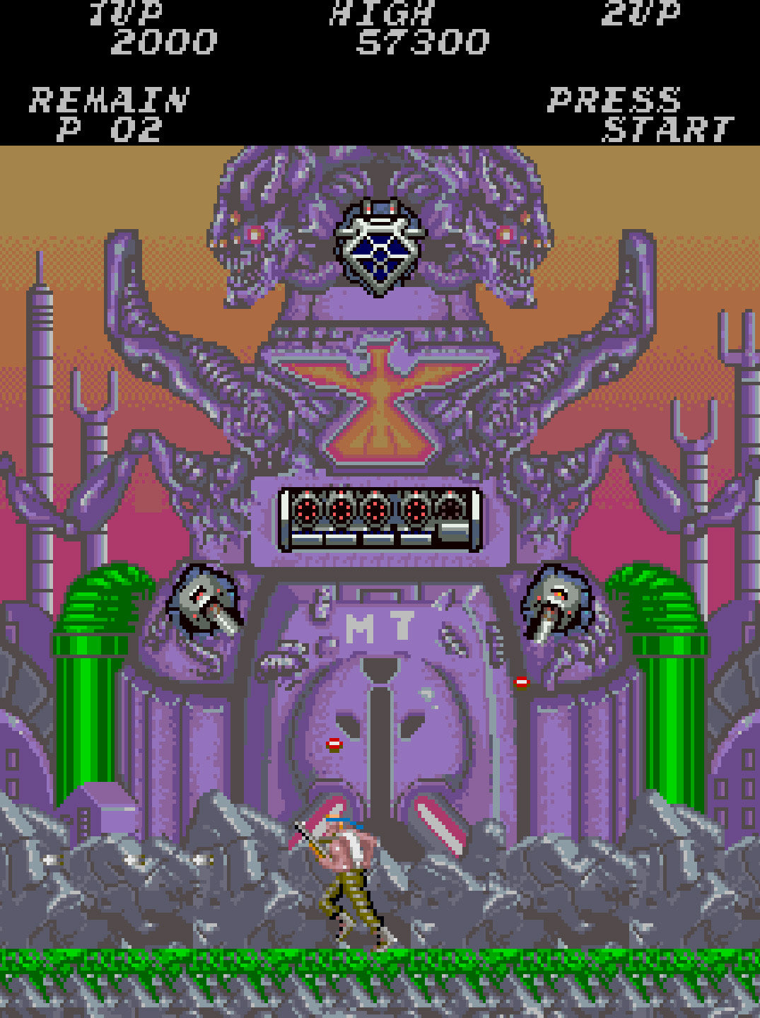 - Diverse Weaponry: Power-ups include spread guns, laser rifles, and flamethrowers, each suited to different combat situations.