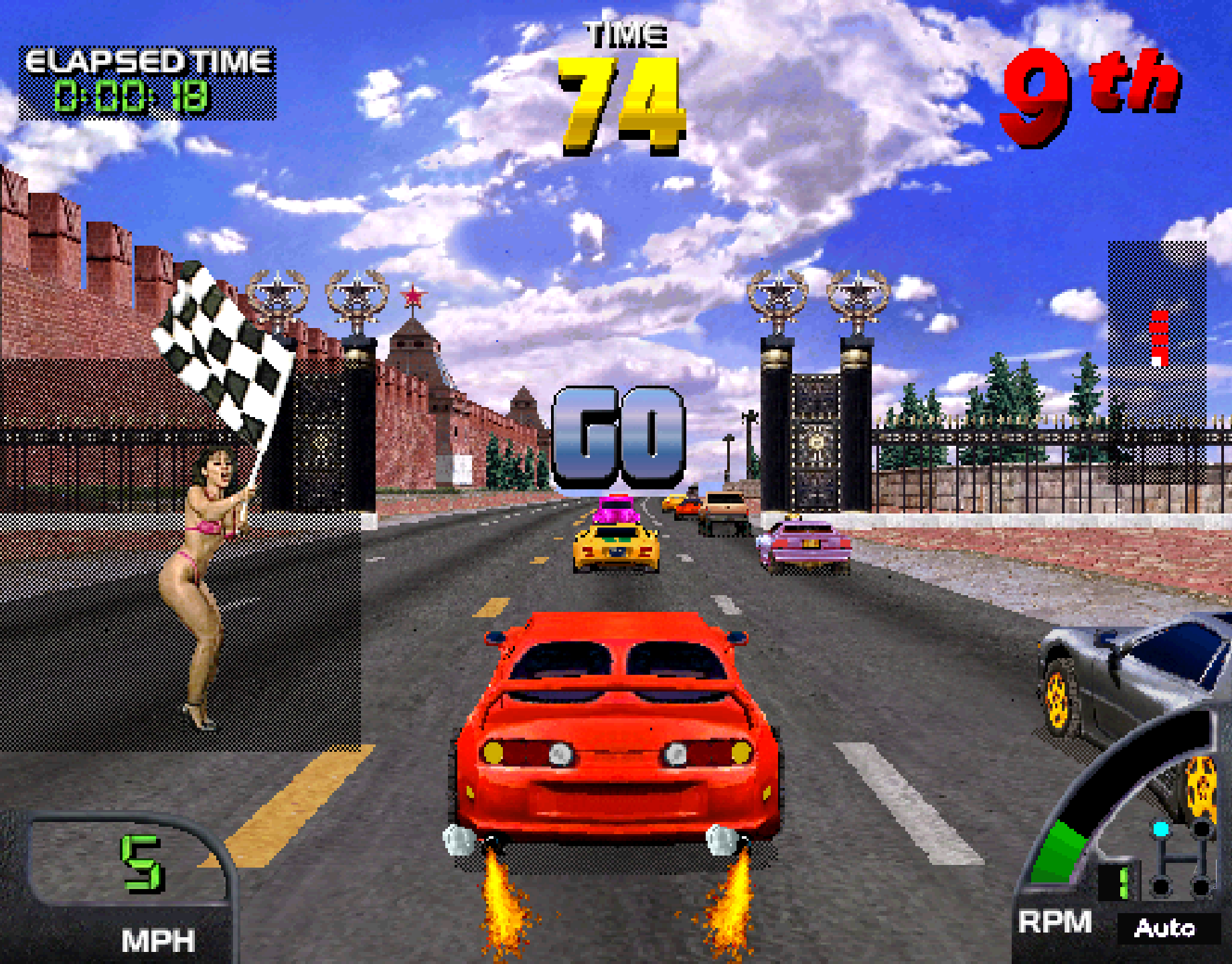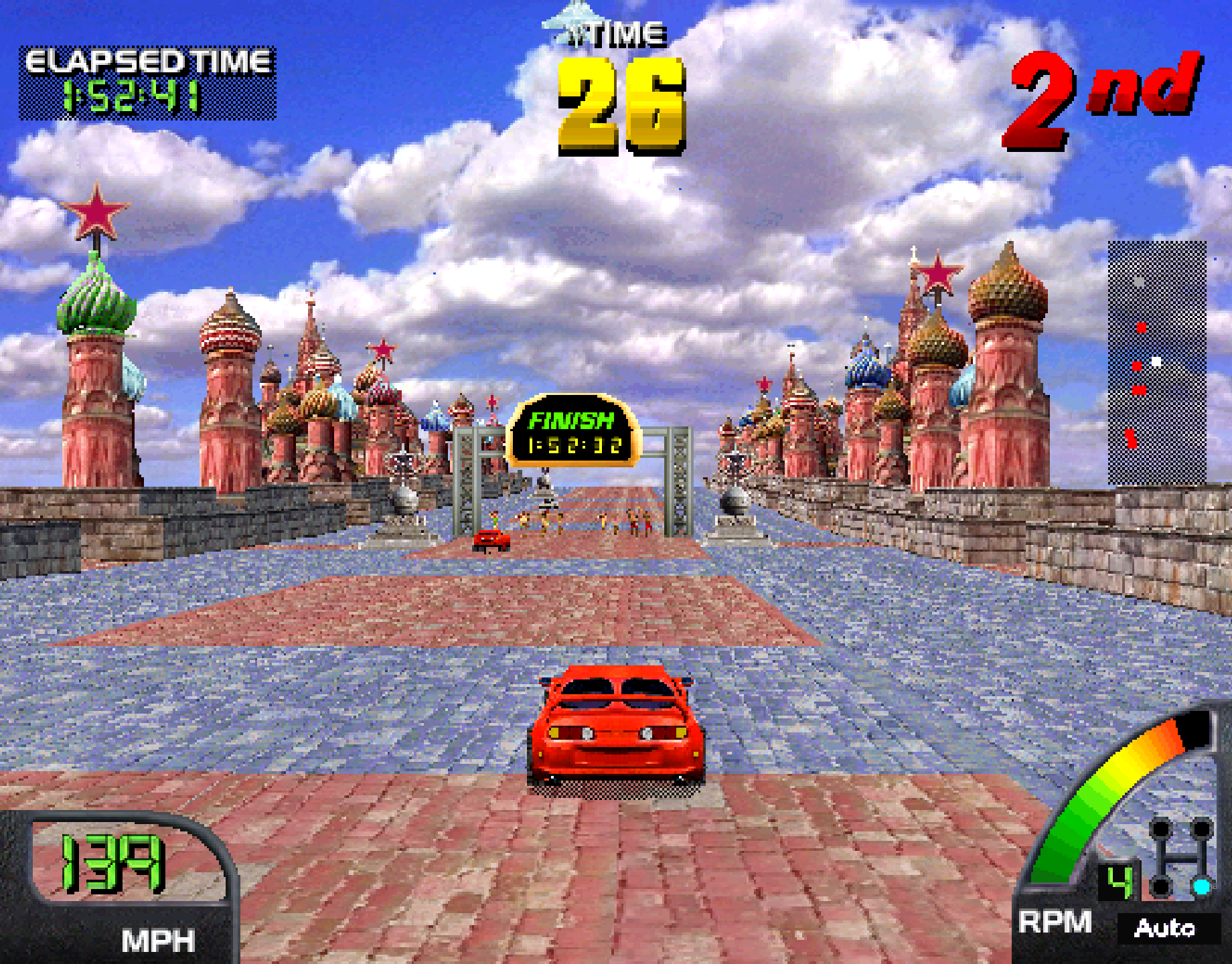 Released in 1996 by Midway and Nintendo, Cruis’n World was the globe-trotting sequel to the hit Cruis’n USA. This installment took the outrageous arcade racing action international, with tracks set across famous landmarks and exotic destinations. Building on the foundation of its predecessor, Cruis’n World added more cars, tricks, and multiplayer capabilities while embracing its over-the-top, high-speed style. It quickly became a fixture in arcades worldwide.