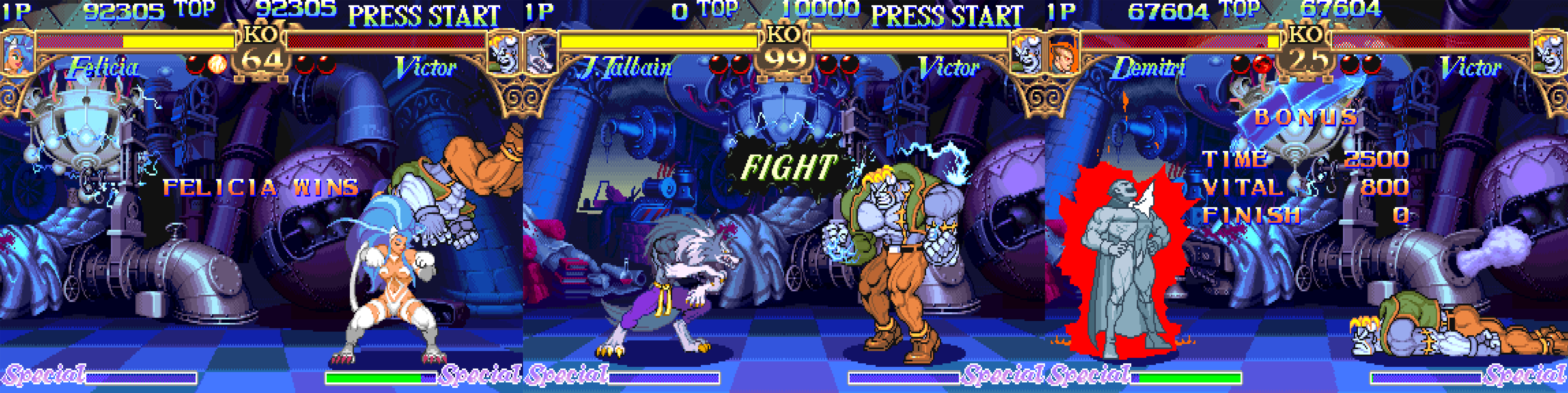 - Chain Combo System – Darkstalkers introduced a predecessor to the "Magic Series" combo system, allowing players to chain attacks together seamlessly.