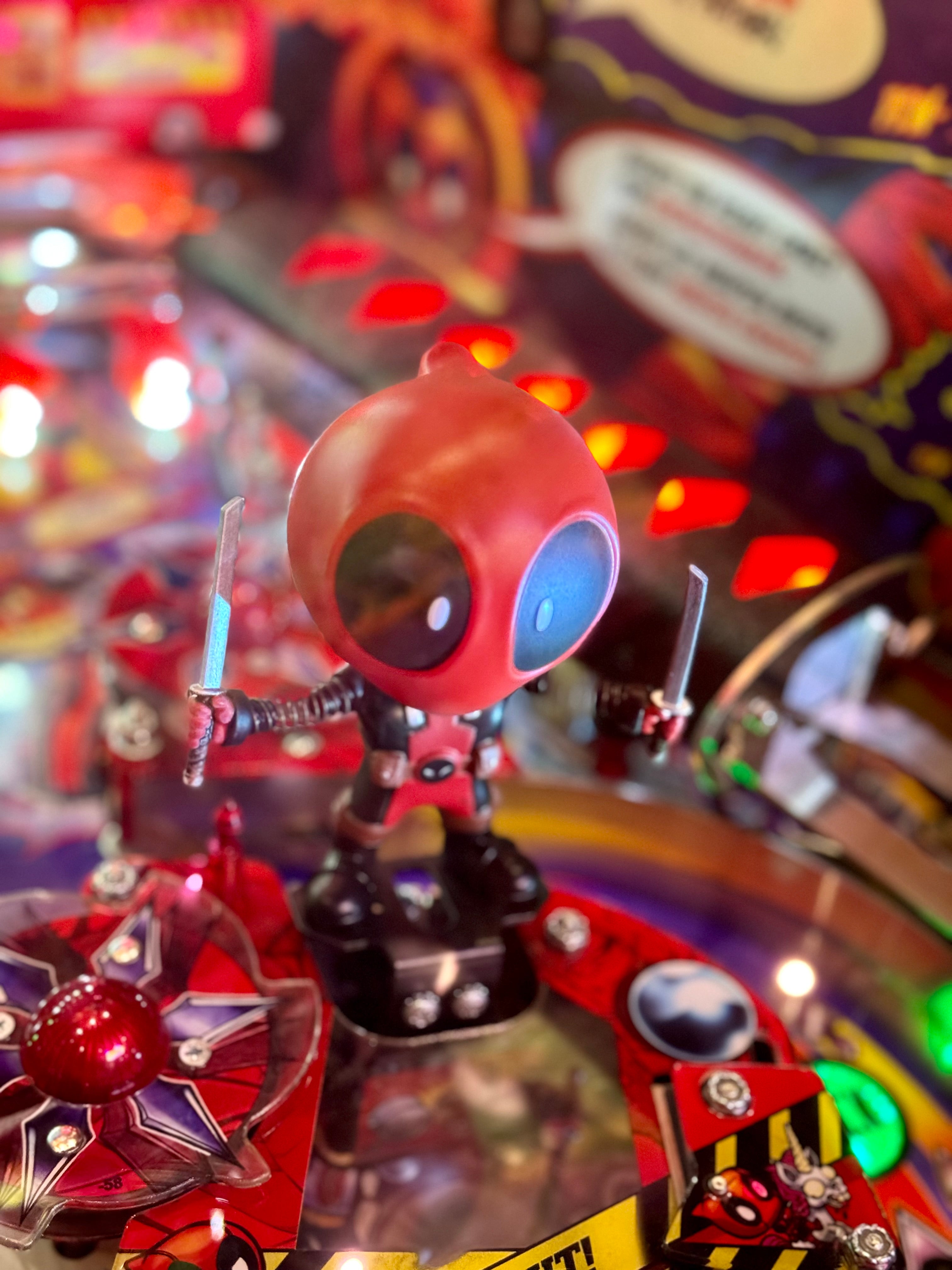 The Deadpool Pinball machine brings Marvel’s mercenary with a mouth to life in a way only George Gomez could imagine. From witty callouts to unique playfield toys, the machine captures Deadpool’s irreverent humor and action-packed adventures. Gomez’s design focuses on player engagement through strategic shots, dynamic playfield elements, and a playful yet challenging experience.