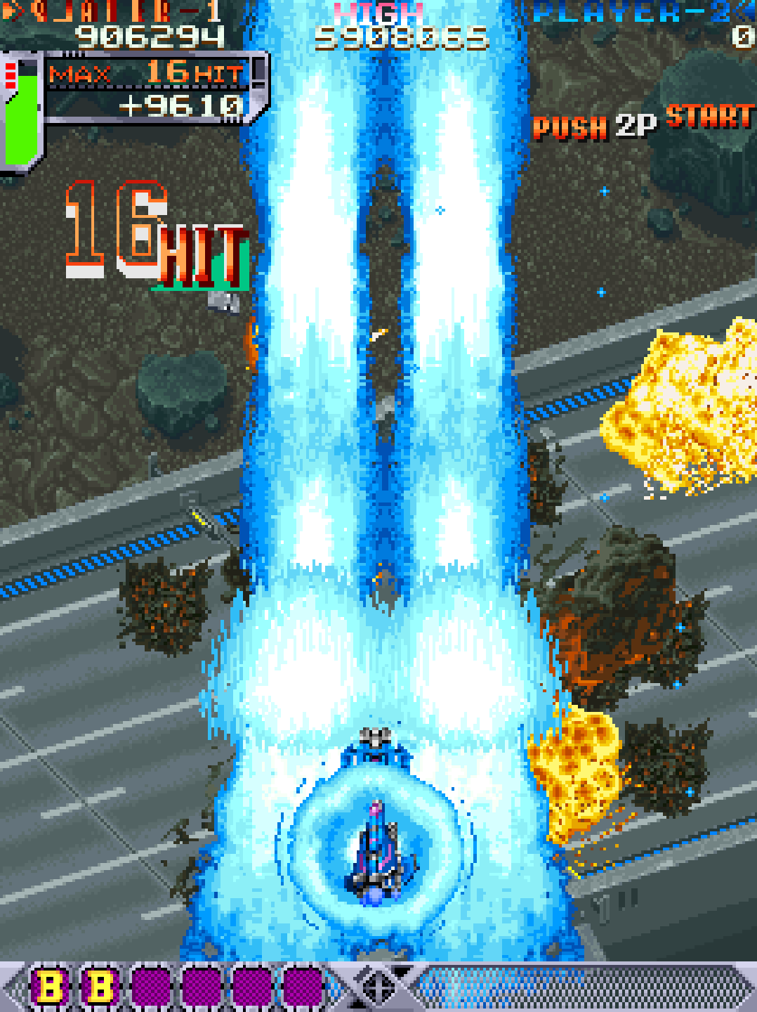 The game was built on Cave’s 68000-based arcade hardware, which allowed for smooth sprite-based action, intricate bullet patterns, and highly responsive controls. It introduced refined scoring mechanics and complex enemy waves, cementing its place as one of the most influential bullet hell shooters ever created.