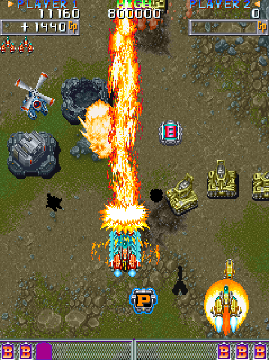 - Bombs: Screen-clearing bombs provide temporary relief from enemy bullet fire and offer strategic scoring opportunities.