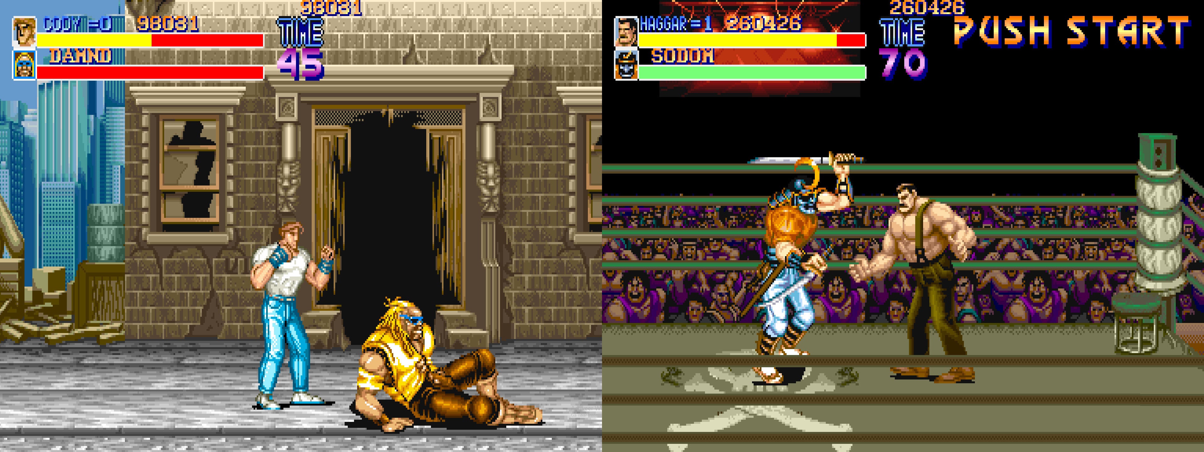 - Three Playable Characters: Choose between the strong and powerful Mike Haggar, the agile Guy, or the balanced Cody, each with unique fighting styles.