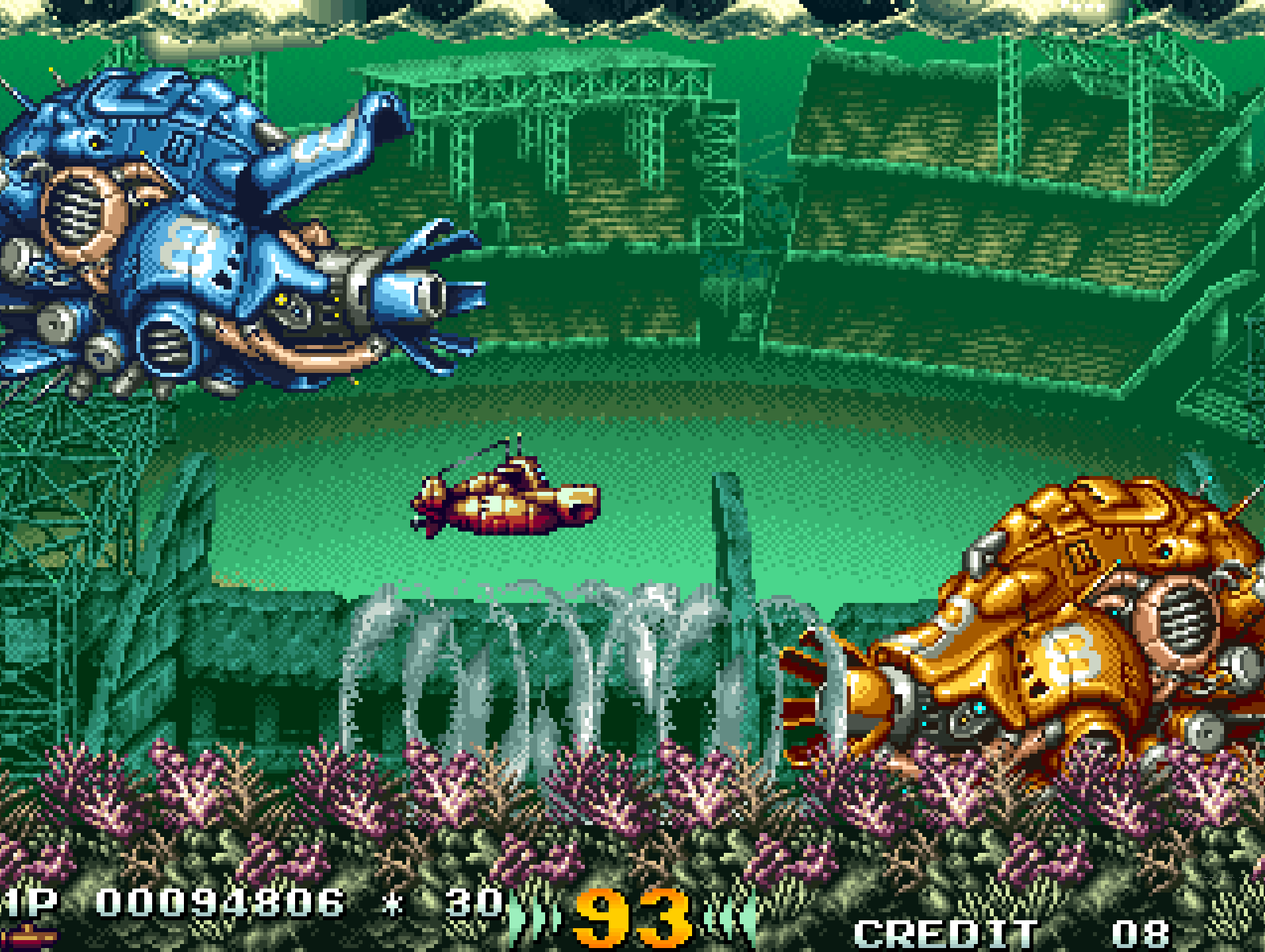 Released in 1993 by Irem, In the Hunt is a side-scrolling underwater shooter that put players in control of a powerful submarine, the Granvia. Featuring detailed pixel art, explosive action, and a unique setting beneath the ocean’s depths, the game gained recognition for its stunning visuals and challenging gameplay. In the Hunt is also notable for being developed by the same team that later created Metal Slug, making it a precursor to one of the most beloved arcade franchises.