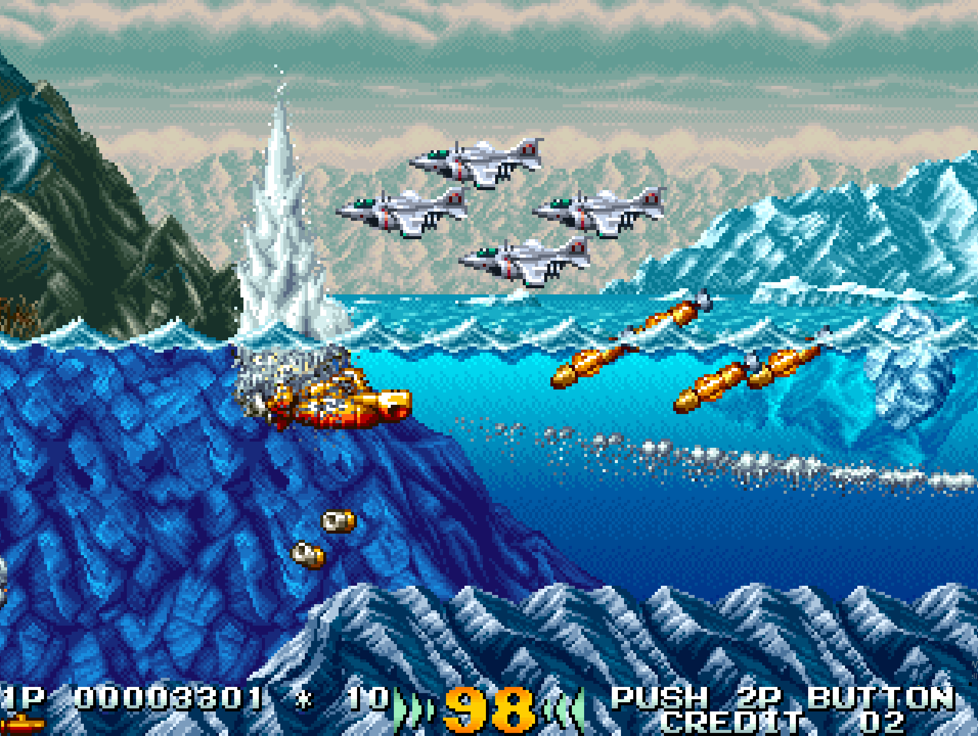 A unique submarine-based shooter, In the Hunt brought the bullet-hell mechanics of R-Type into an underwater world, later inspiring the design of Metal Slug.