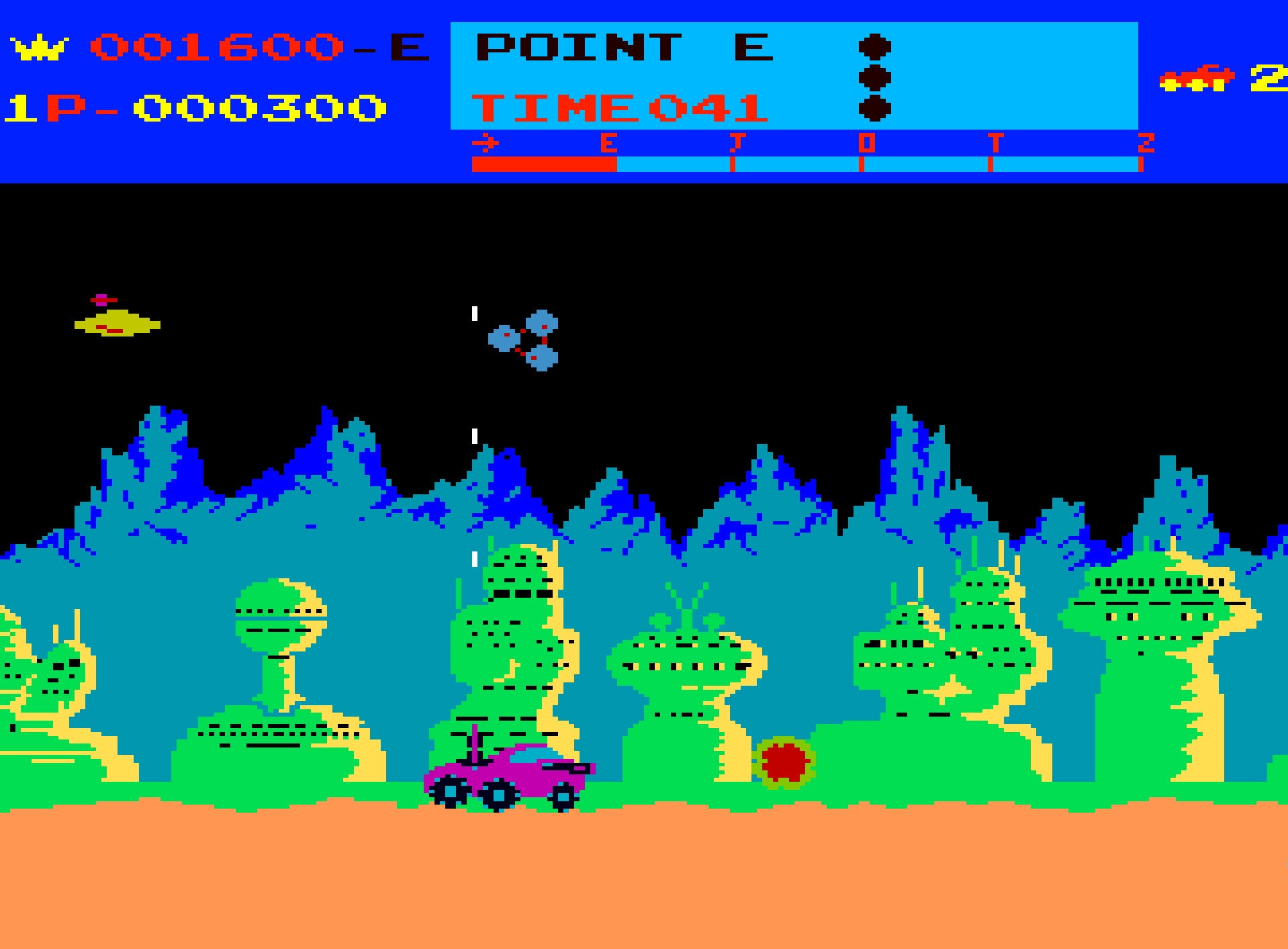 A pioneering side-scrolling shooter, Moon Patrol was one of the first arcade games to introduce parallax scrolling, creating a sense of depth in its futuristic lunar landscapes.
