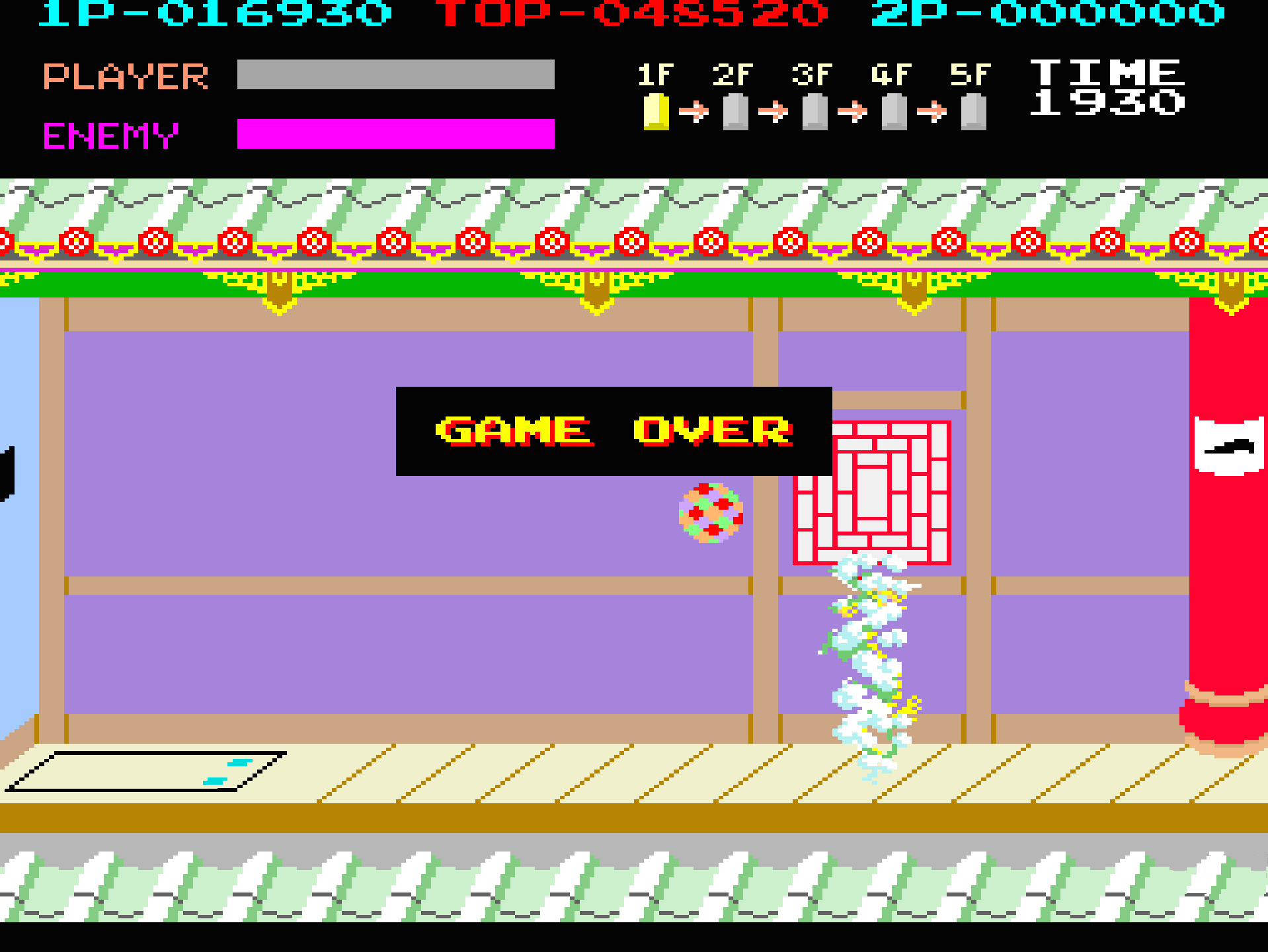 - Multi-Level Boss Fights – At the end of each floor, Thomas faces a stronger opponent, including stick-wielding fighters, a boomerang master, and a giant brute.