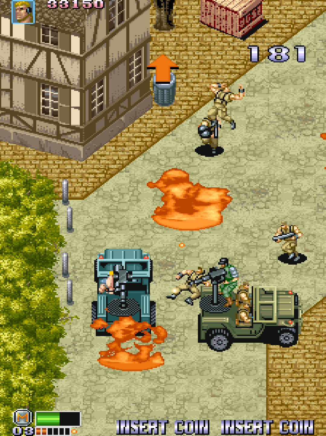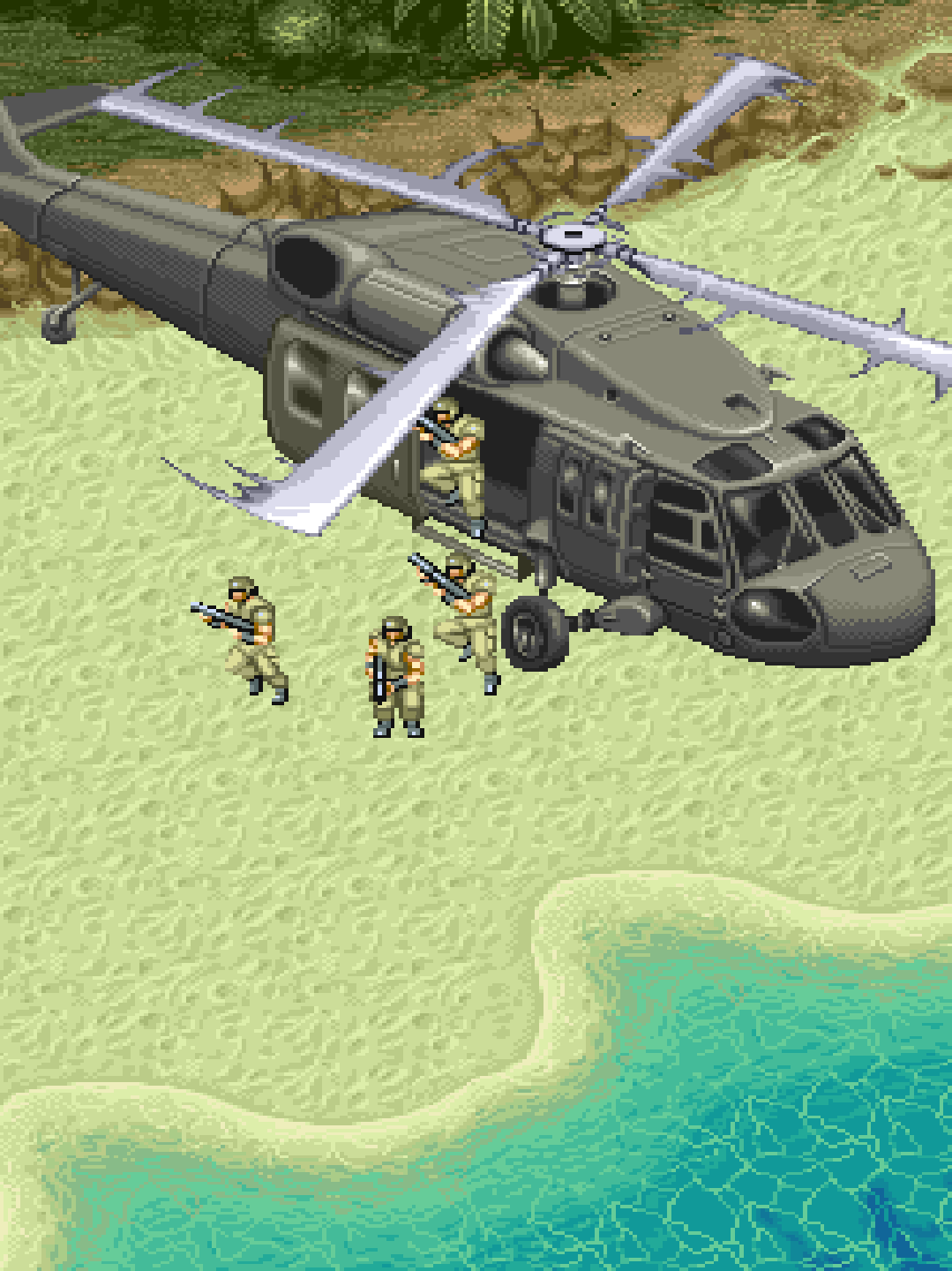 - Enemy Swarms: Constant waves of infantry, gun turrets, boats, and helicopters.