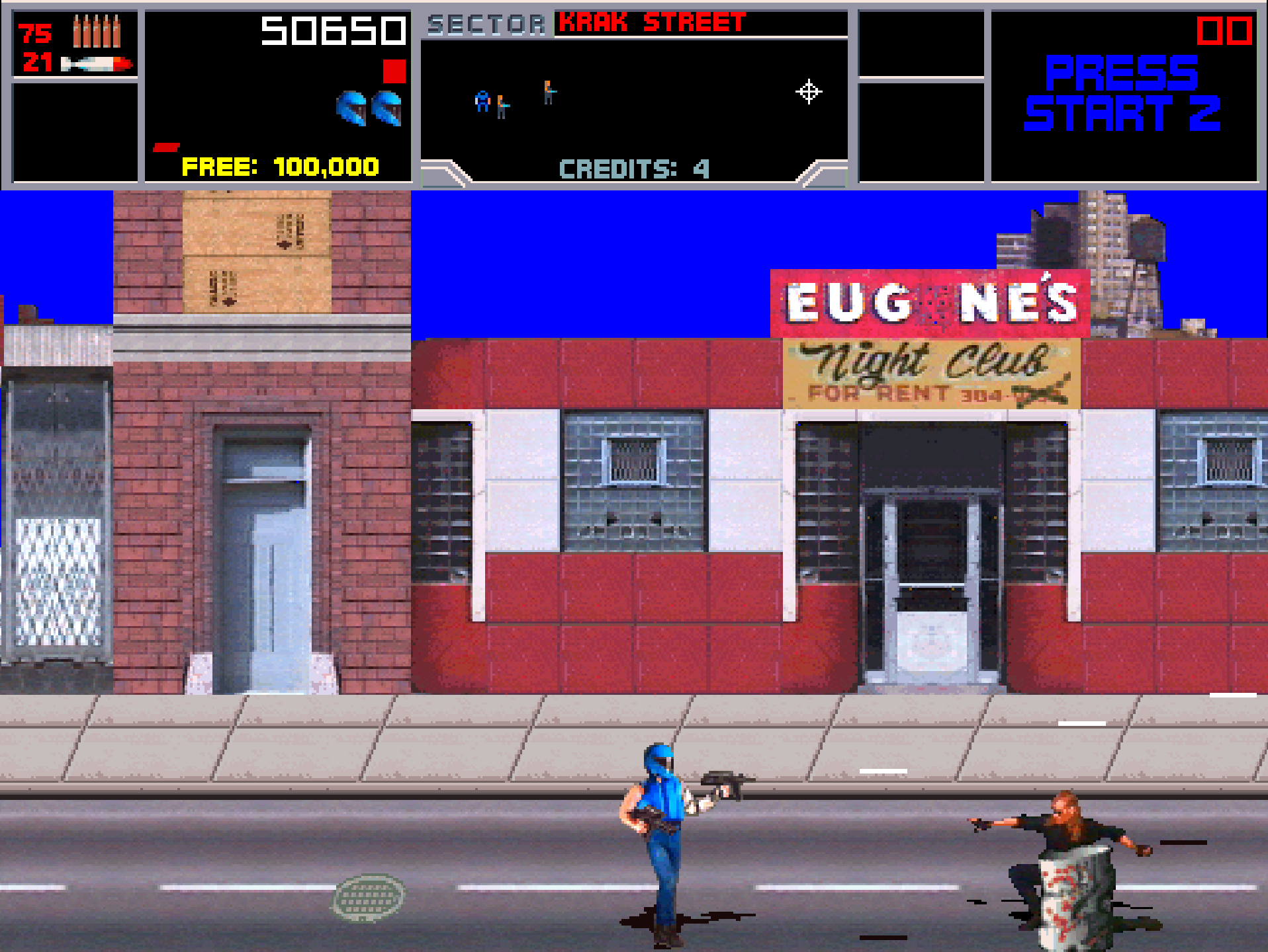 NARC was developed by Eugene Jarvis and his team at Williams, known for pushing the boundaries of arcade action. Utilizing digitized sprites—a technique later made famous by Mortal Kombat—the game created realistic character animations that shocked and impressed arcade-goers. With exaggerated violence and a futuristic tone, it was a bold and polarizing statement during the height of the anti-drug era in the U.S.