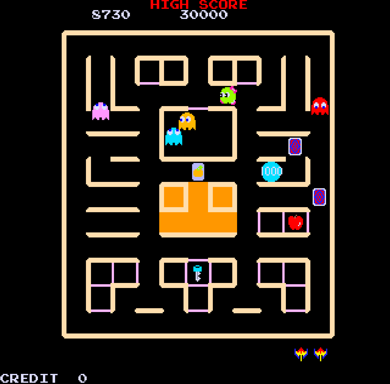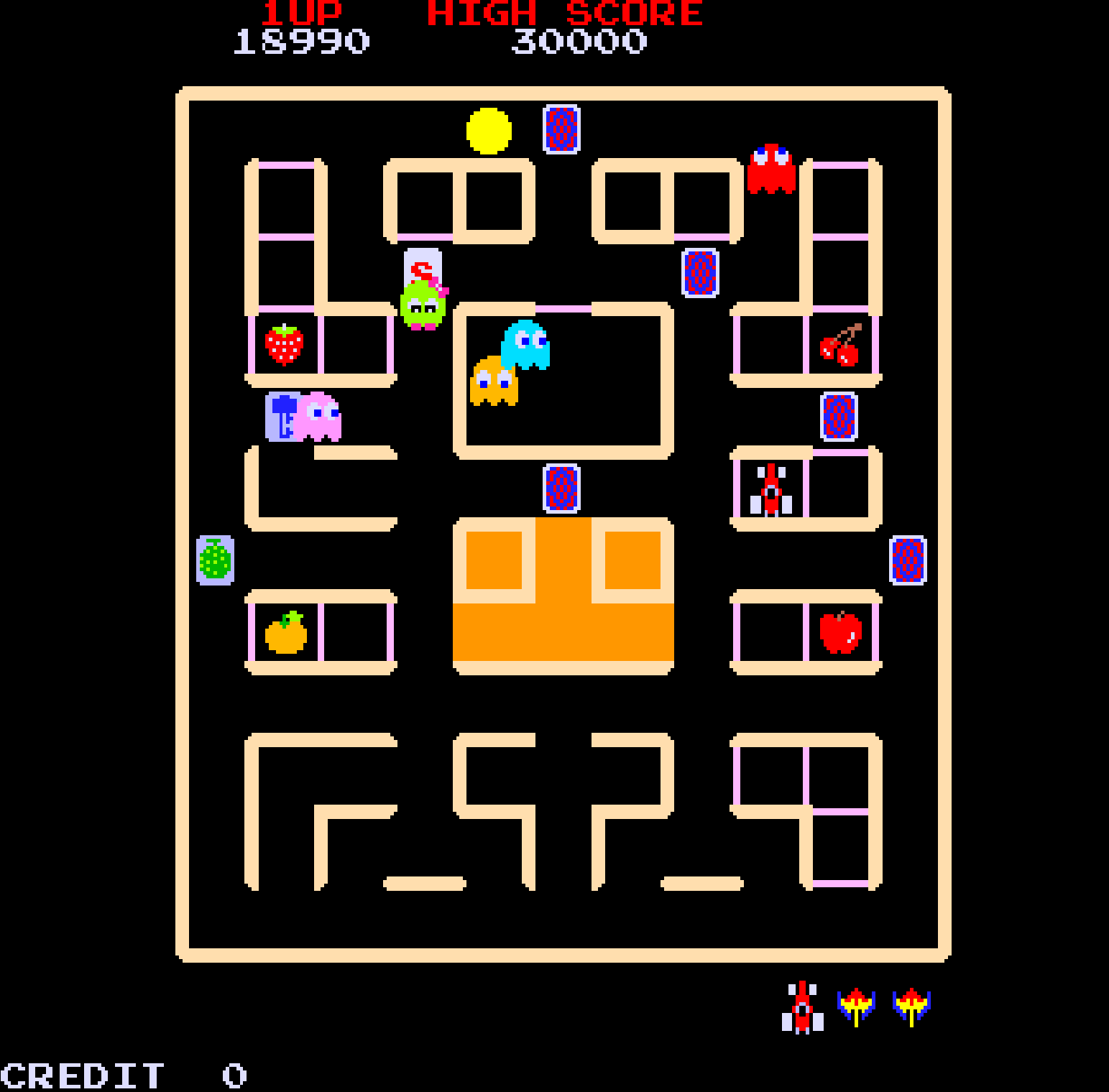 Item Power-Ups: Instead of Power Pellets, players gain temporary abilities by collecting items such as Galaxian flagships, trumpets, or cars—each stunning or disabling ghosts in different ways.