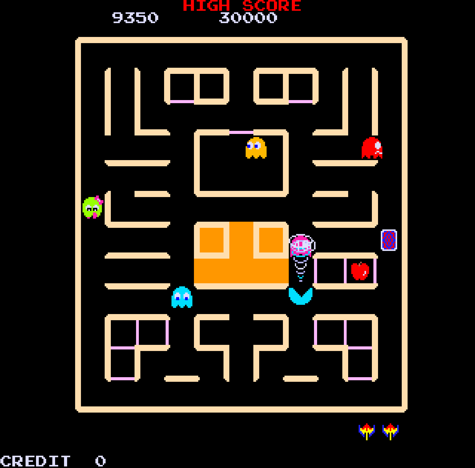 Ghosts: Blinky, Pinky, Inky, and Clyde return with their classic chase behavior, still the main threat in the maze.
