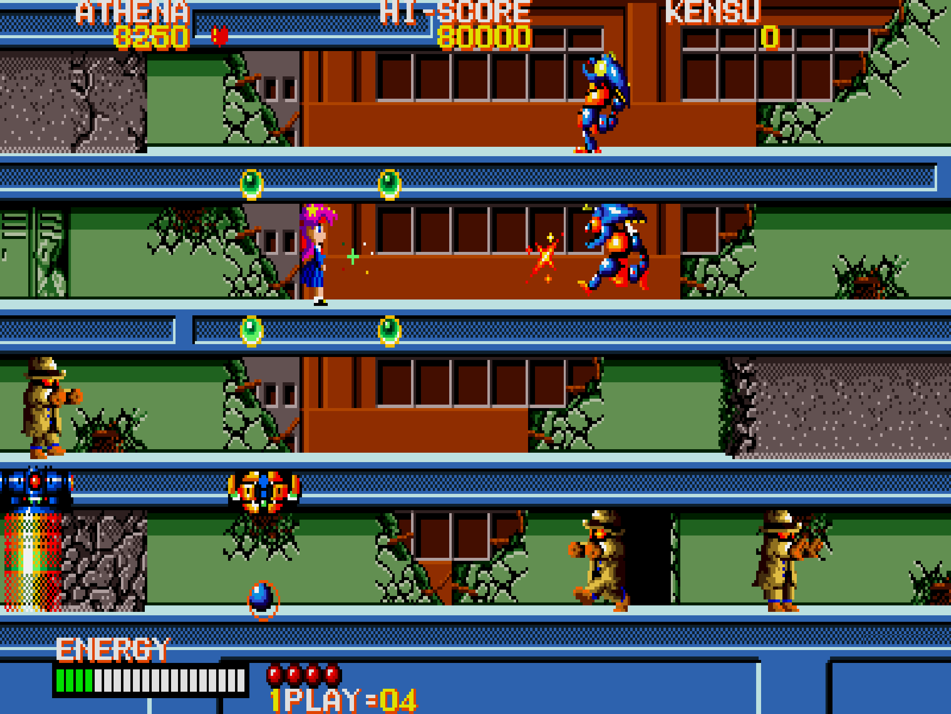 - Transformation: Fully powered characters can morph into giant invincible psychic beasts—Athena becomes a phoenix, Kensou a green dragon.
