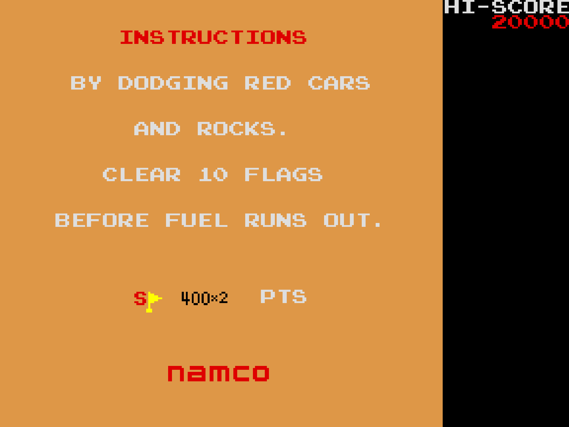 The combination of fast movement, enemy evasion, and strategic flag collection made Rally-X a challenging and rewarding arcade experience.