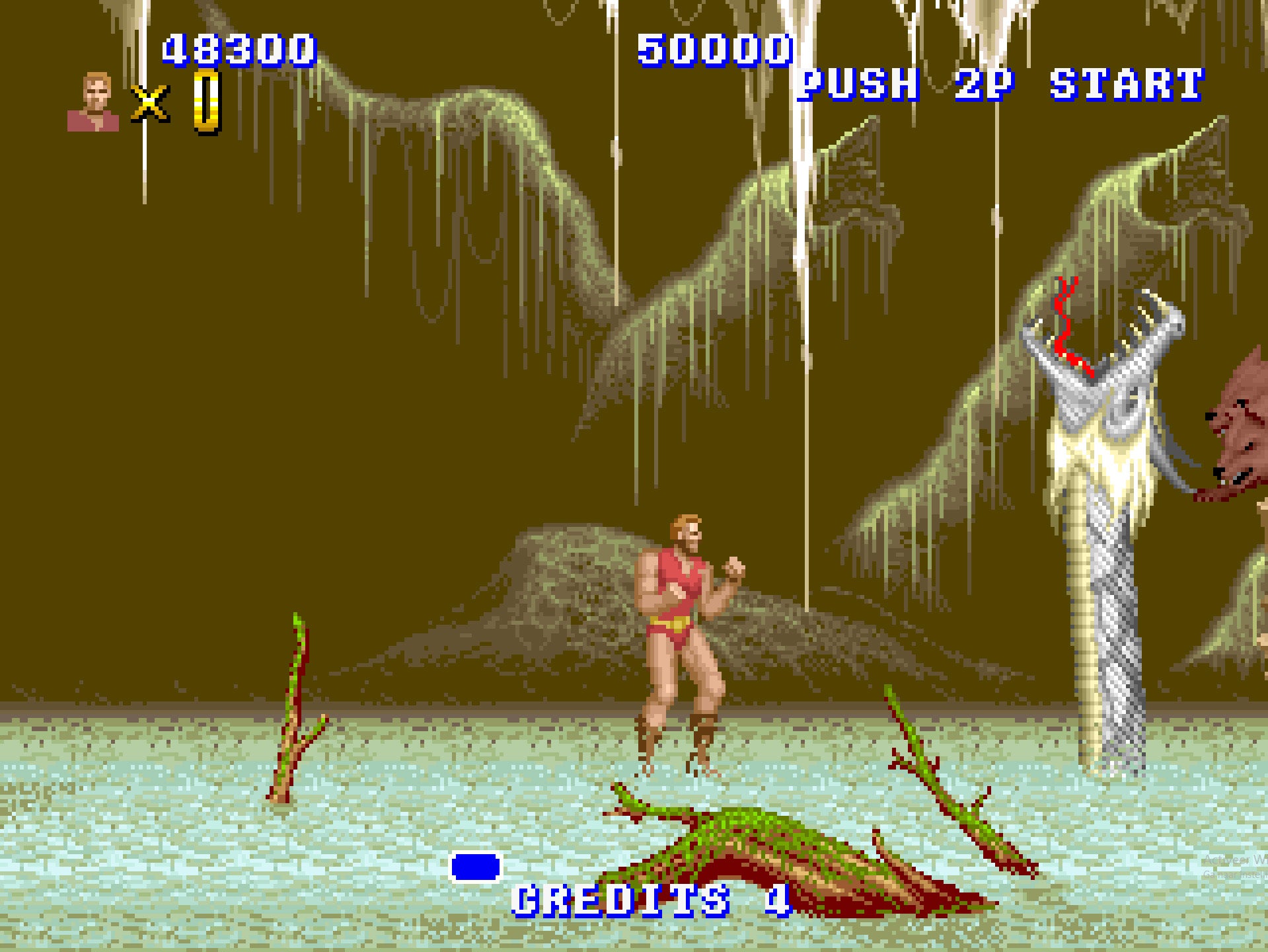 A side-scrolling beat 'em up where players assume the role of a resurrected warrior battling mythological creatures. Its transformation mechanic and co-op gameplay made it a standout title.