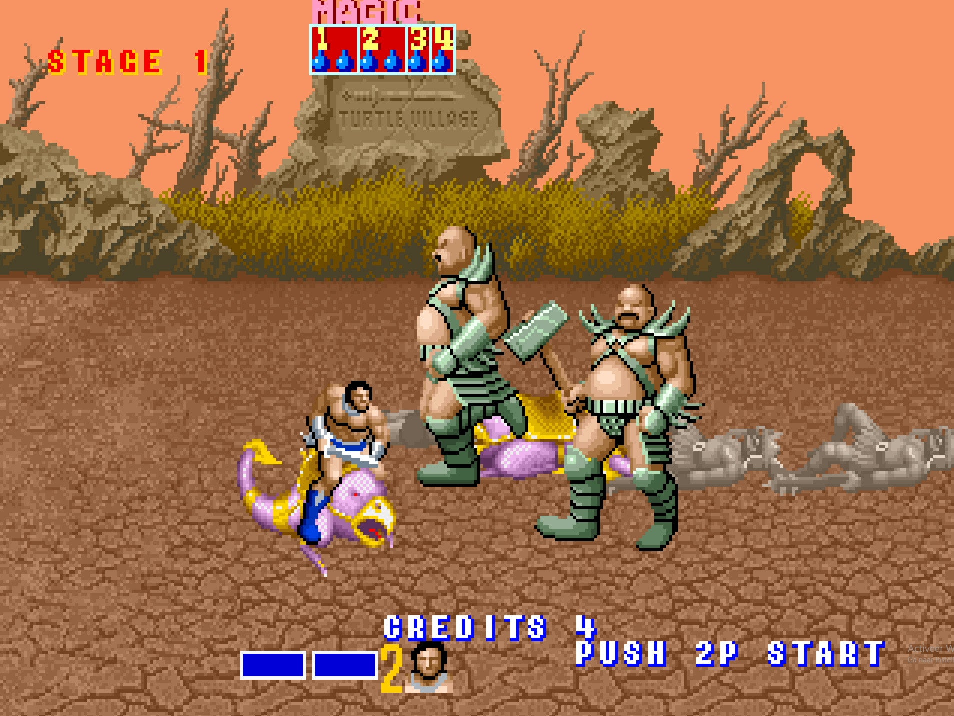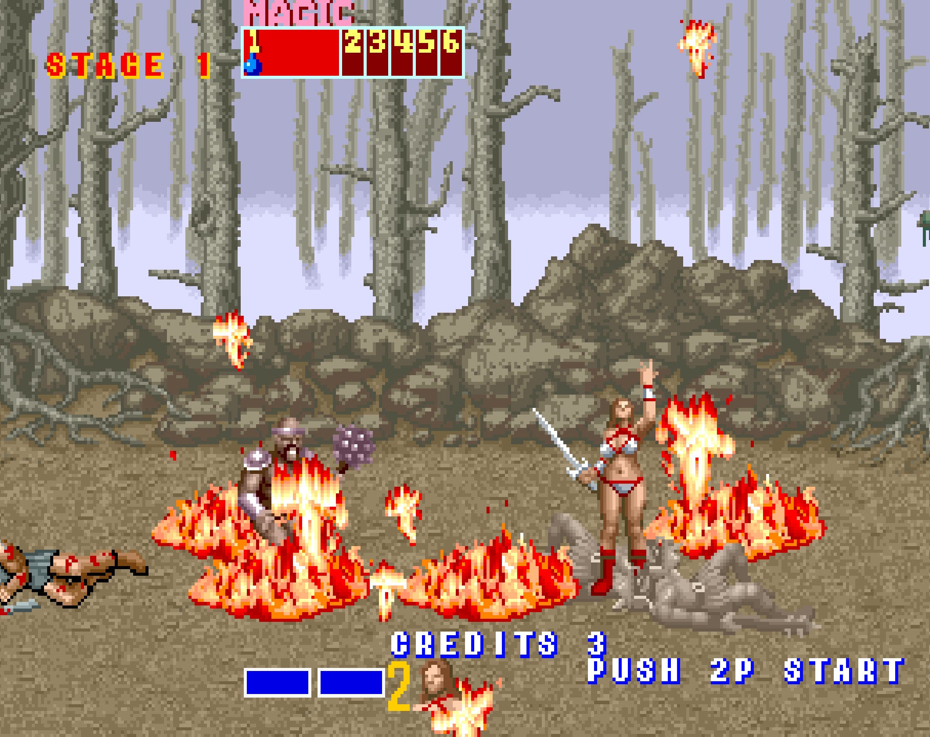 A fantasy beat ‘em up that allowed players to take control of different warriors on a quest to defeat the evil Death Adder. Its co-op mechanics and weapon-based combat made it a staple of arcade multiplayer gaming.