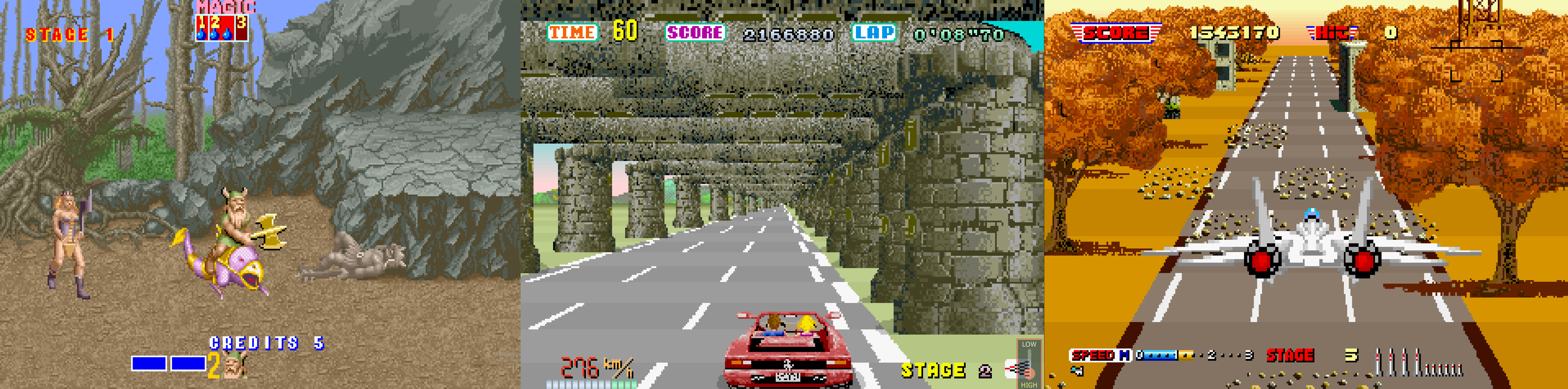 Sega became renowned for pushing technological boundaries, utilizing powerful arcade hardware to deliver cutting-edge visuals, smooth gameplay, and immersive experiences. Their "Super Scaler" technology played a key role in making their games stand out, offering fluid sprite scaling and 3D-like depth.