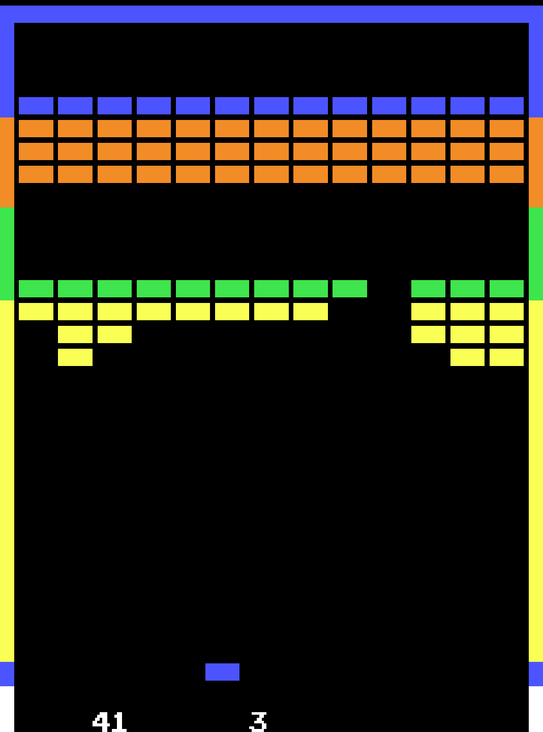 Players use a paddle to bounce a ball into a wall of bricks, clearing as many as possible before missing the ball.