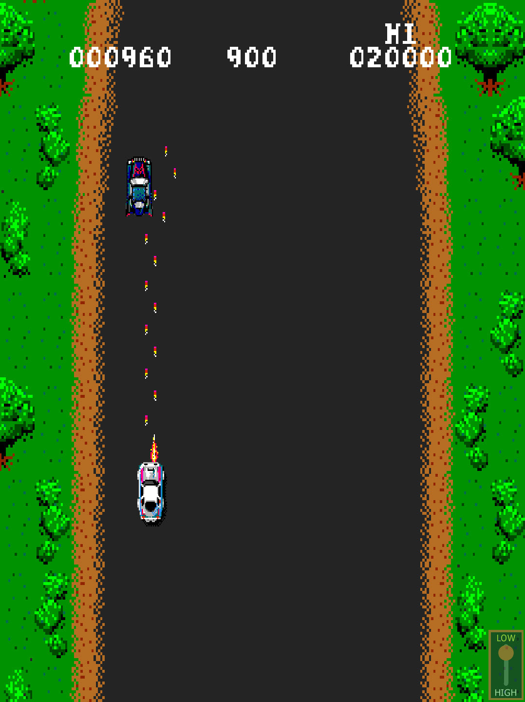 This fast-paced driving game tasked players with navigating winding roads while shooting down enemy vehicles. Its steep difficulty curve and precise controls left many players frustrated yet addicted.