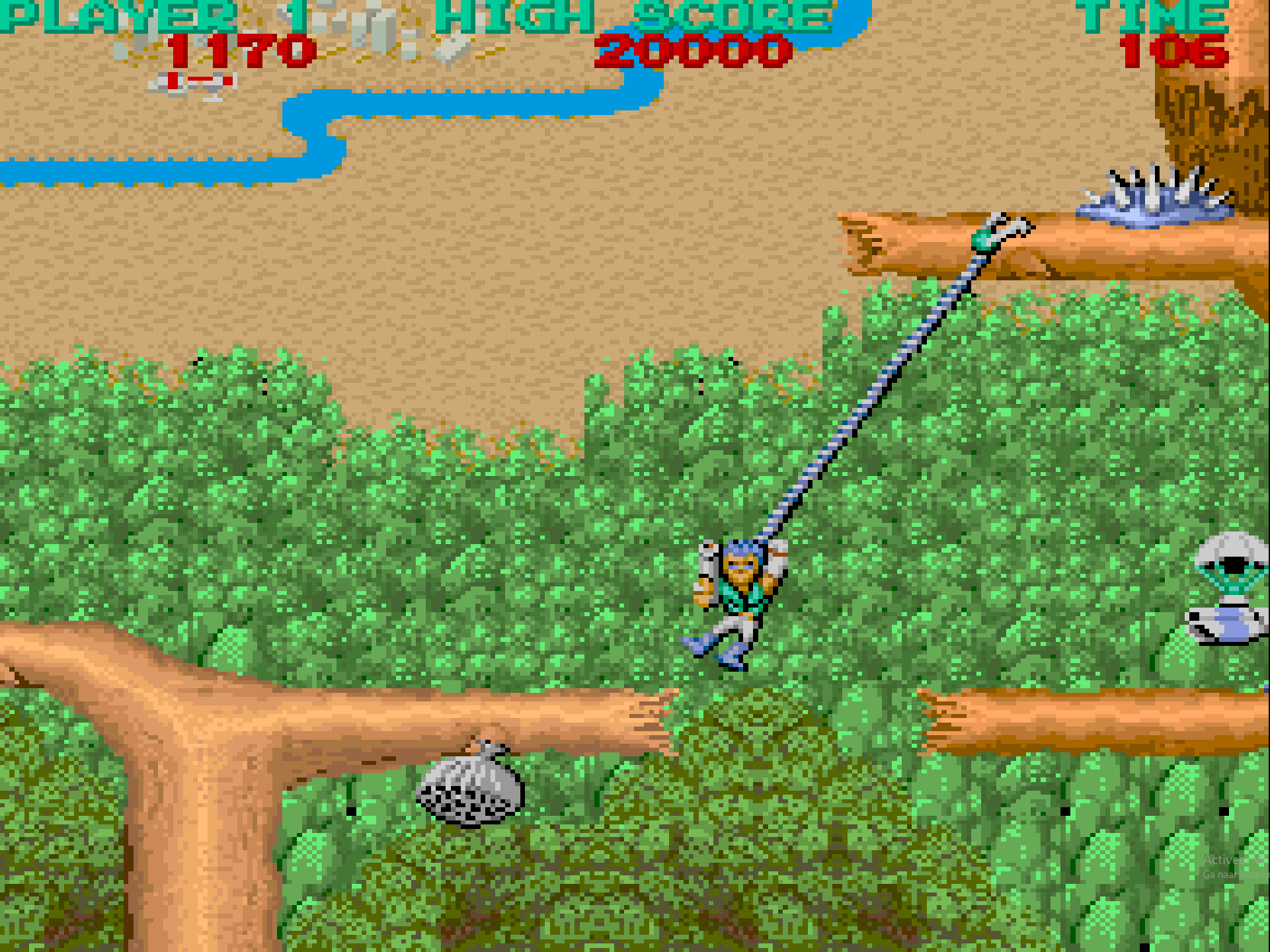 Unlike other platformers of its time, Bionic Commando replaced jumping mechanics with a grappling hook, requiring players to swing across obstacles instead of leaping over them.