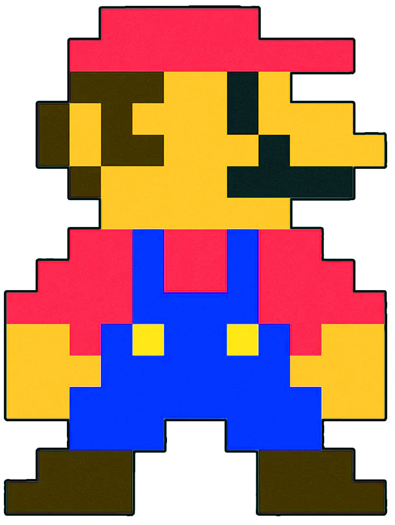 Mario’s signature look—his hat, mustache, and overalls—was born out of the technological limitations of the early 1980s. Animating hair and a mouth was challenging, so Mario was given a hat and mustache to simplify his appearance. Overalls were added to distinguish his arms from his body in the limited pixel palette, making him more visually recognizable.