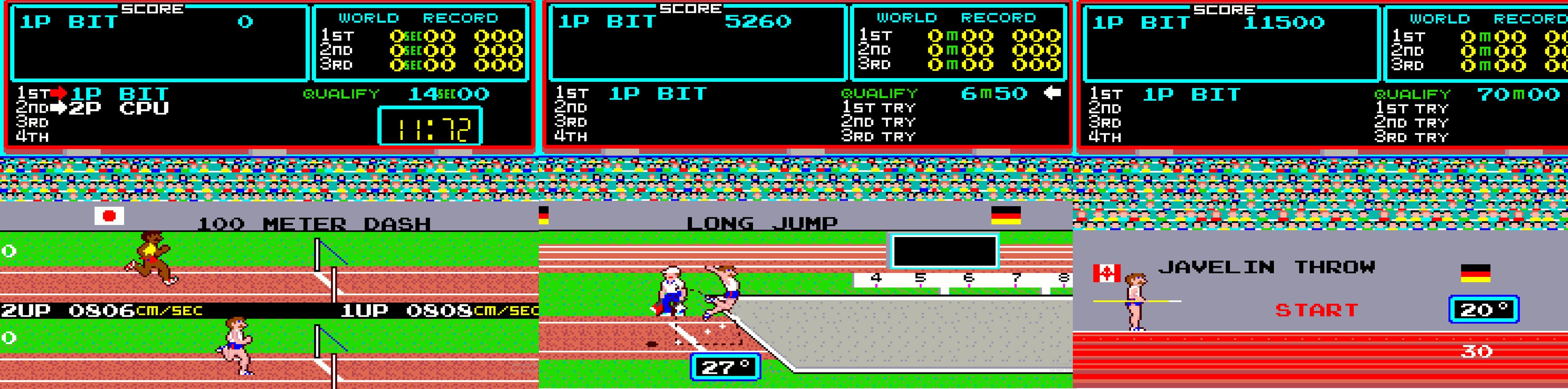 Each event uses a simple control scheme: two run buttons and an action button. This intuitive design encourages frantic button-mashing while rewarding skill and timing. With support for up to two players, Track & Field added a layer of excitement through direct competition, making it a popular choice for head-to-head gameplay.