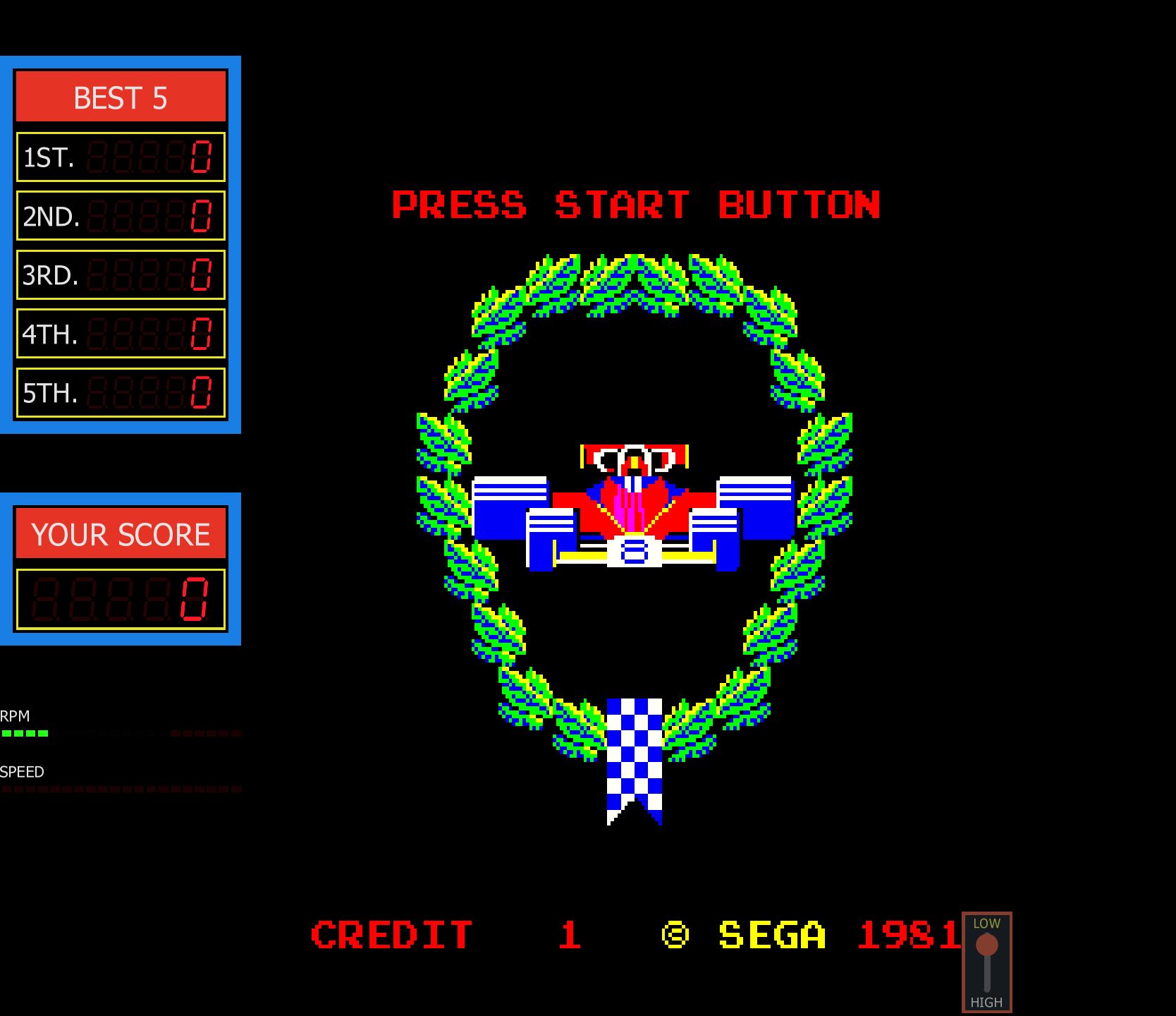 Designed by Steve Hanawa and his team at Sega, Turbo was developed to showcase more advanced sprite-scaling techniques than earlier driving games like Night Driver or Monaco GP. Sega manufactured both upright and sit-down cockpit versions, the latter enhancing immersion with a steering wheel, gear shifter, and pedals. Licensed to Gremlin for U.S. distribution, Turbo was a strong commercial success in arcades and influenced many racing titles that followed, including Namco’s Pole Position (1982).