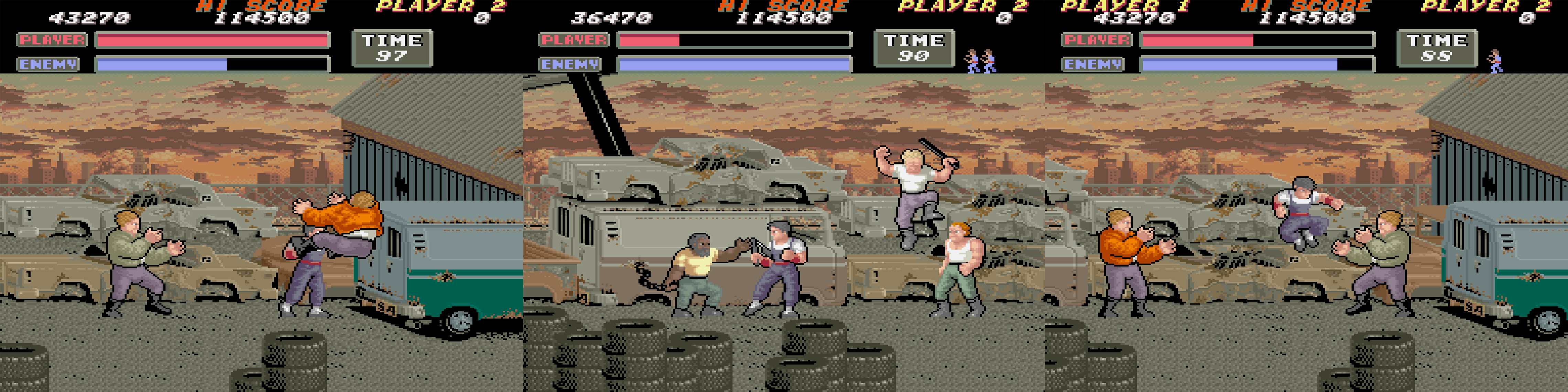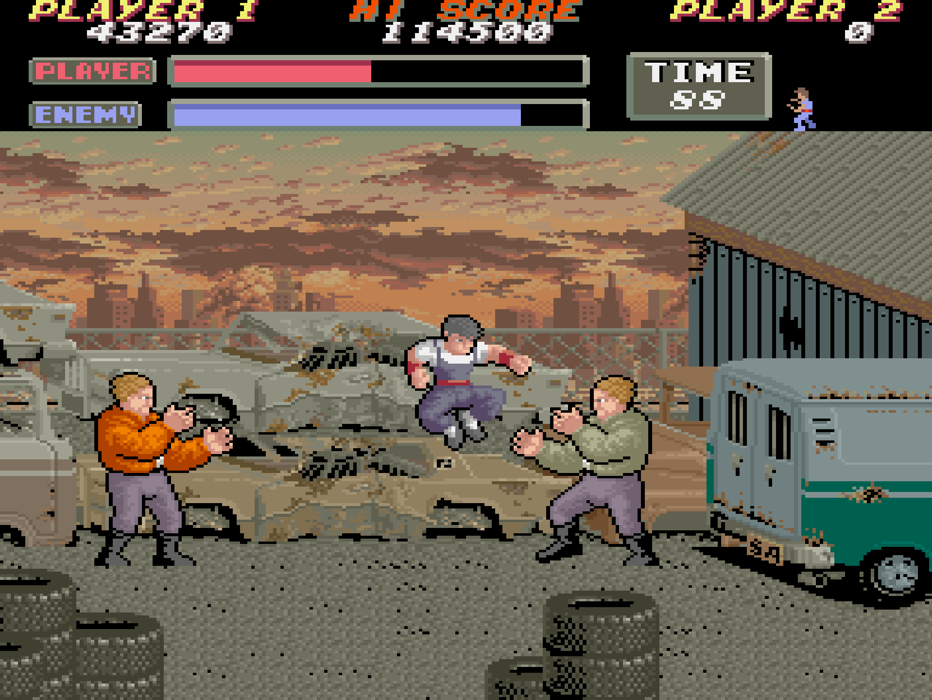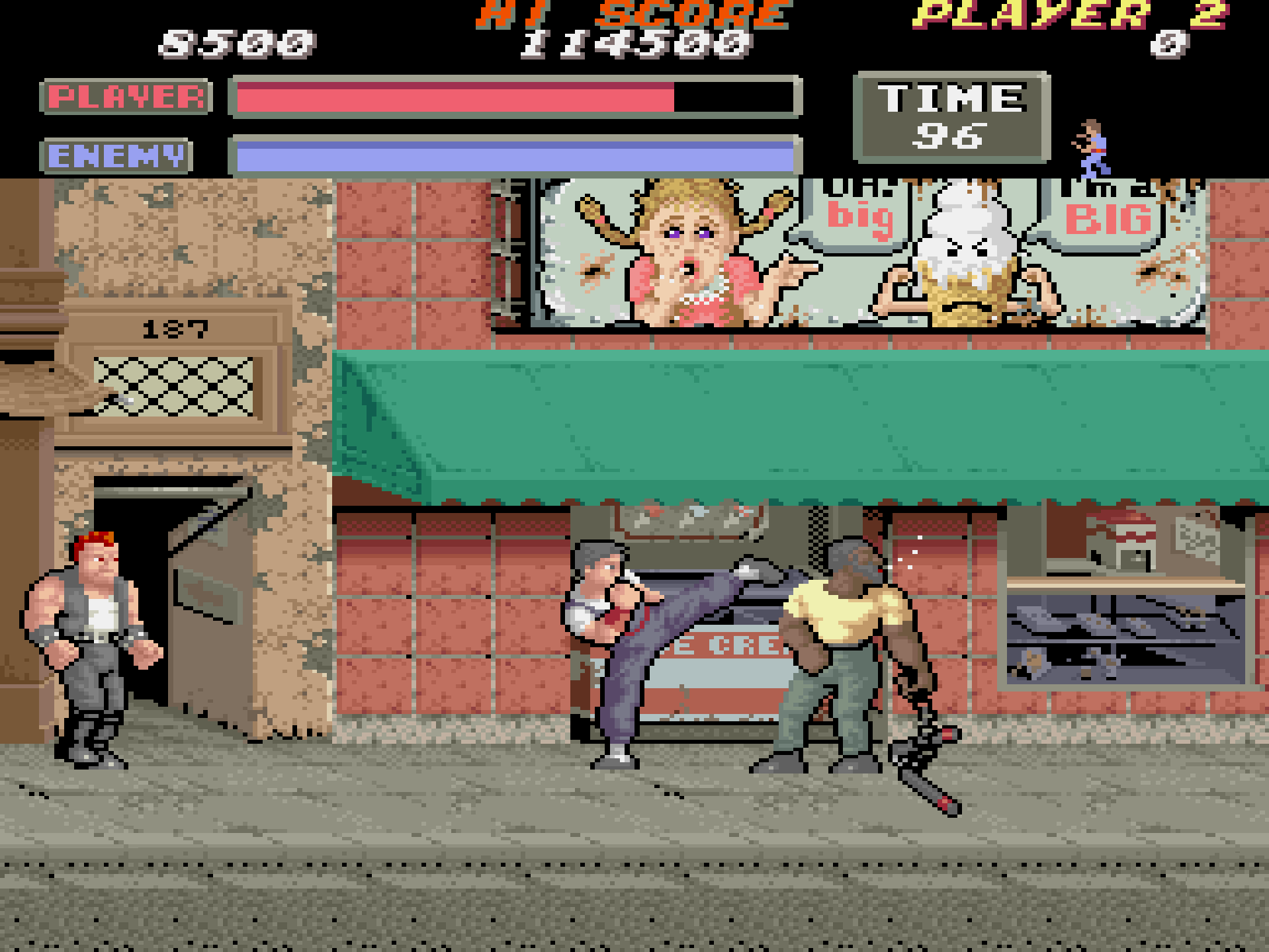 The game’s urban setting and street-fighting premise were inspired by the rising popularity of crime-fighting action films in the late 1980s. The visuals were upgraded to more detailed pixel art, and the levels were set against city streets, back alleys, and construction sites, reinforcing the gritty, urban brawler theme.
