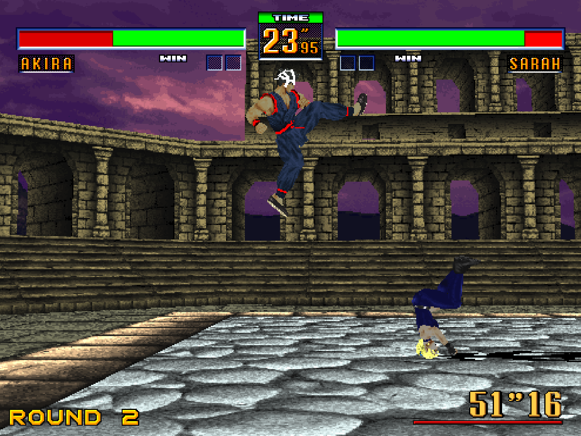 - Faster and More Fluid Combat – Movement and attacks were significantly smoother and more responsive compared to Virtua Fighter 1.