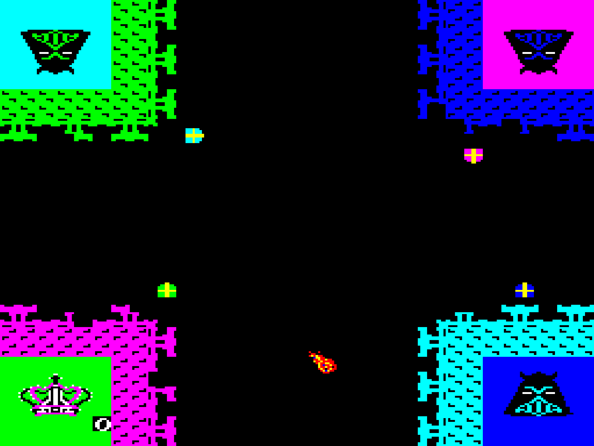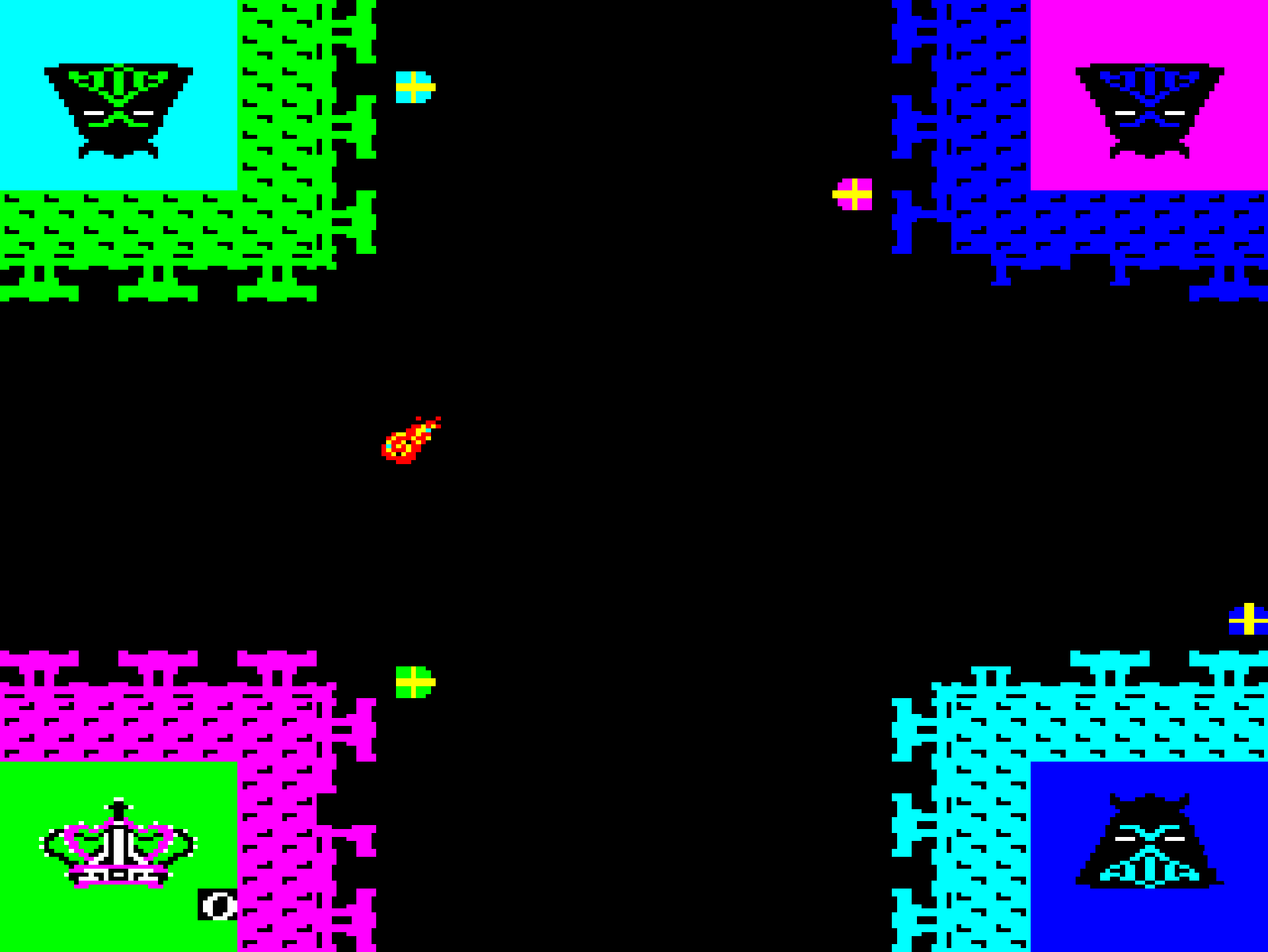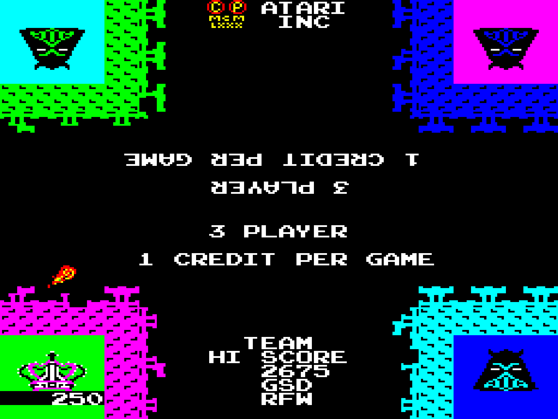 Players control a shield that can move around their castle’s perimeter to block or deflect a fireball aimed at destroying their castle walls.