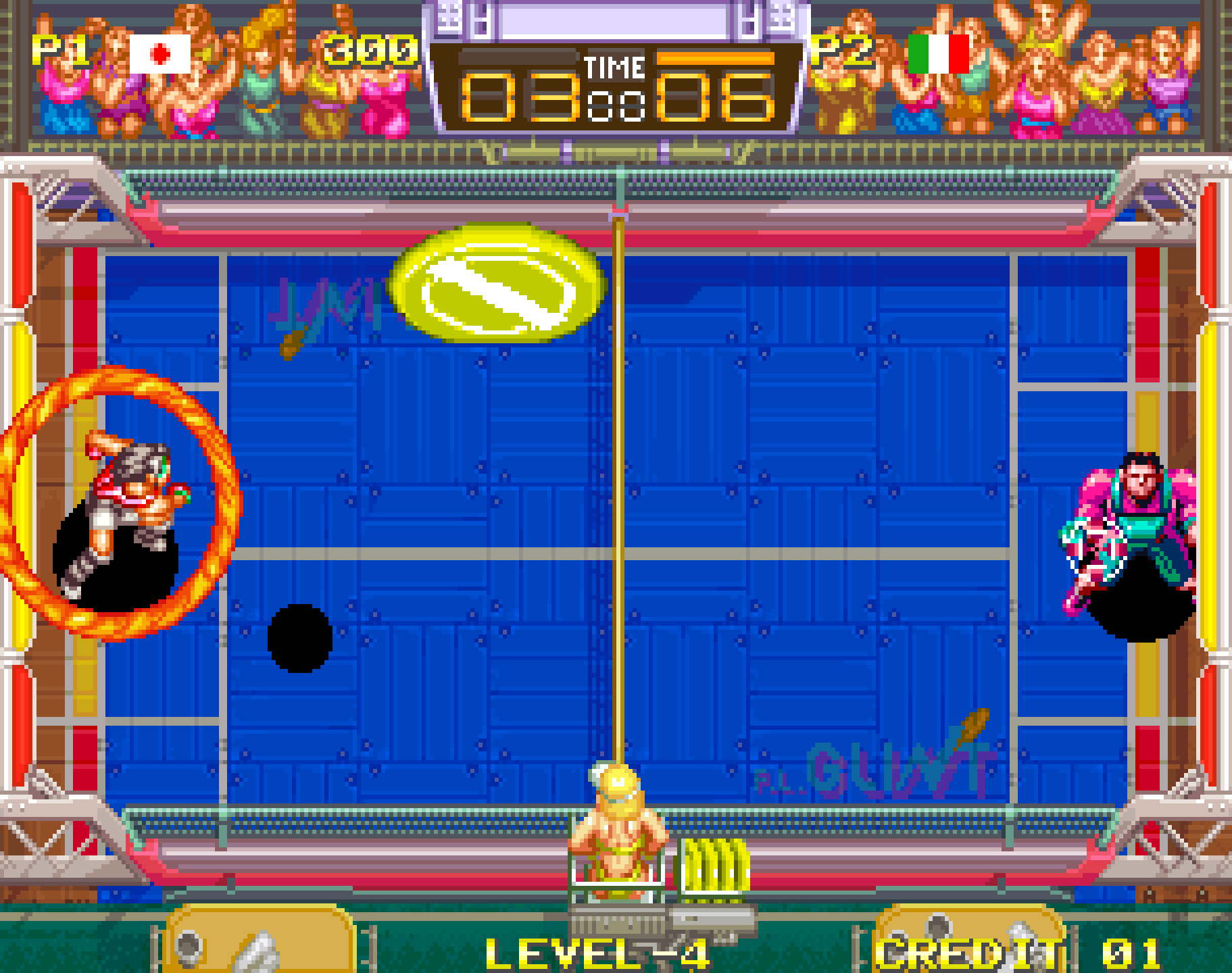 Windjammers was developed by Data East and published for the Neo Geo MVS arcade system, known for its powerful sprite-based graphics and multiplayer-friendly hardware. The game’s concept was inspired by frisbee sports and arcade-style competition, offering easy-to-learn mechanics with high-speed reflex-based gameplay.