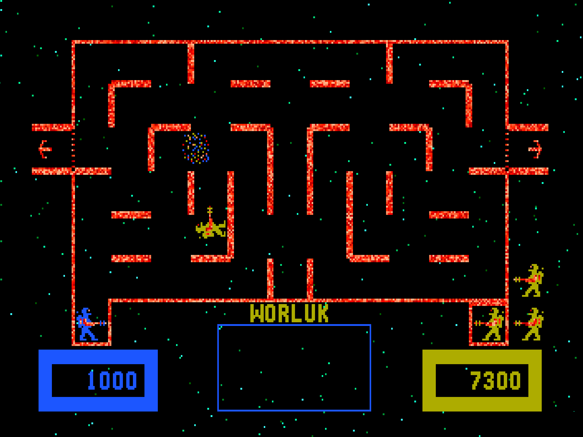 - Enemy Waves: Includes Worluks, Burwors, Garwors (invisible enemies), and Thorwors.