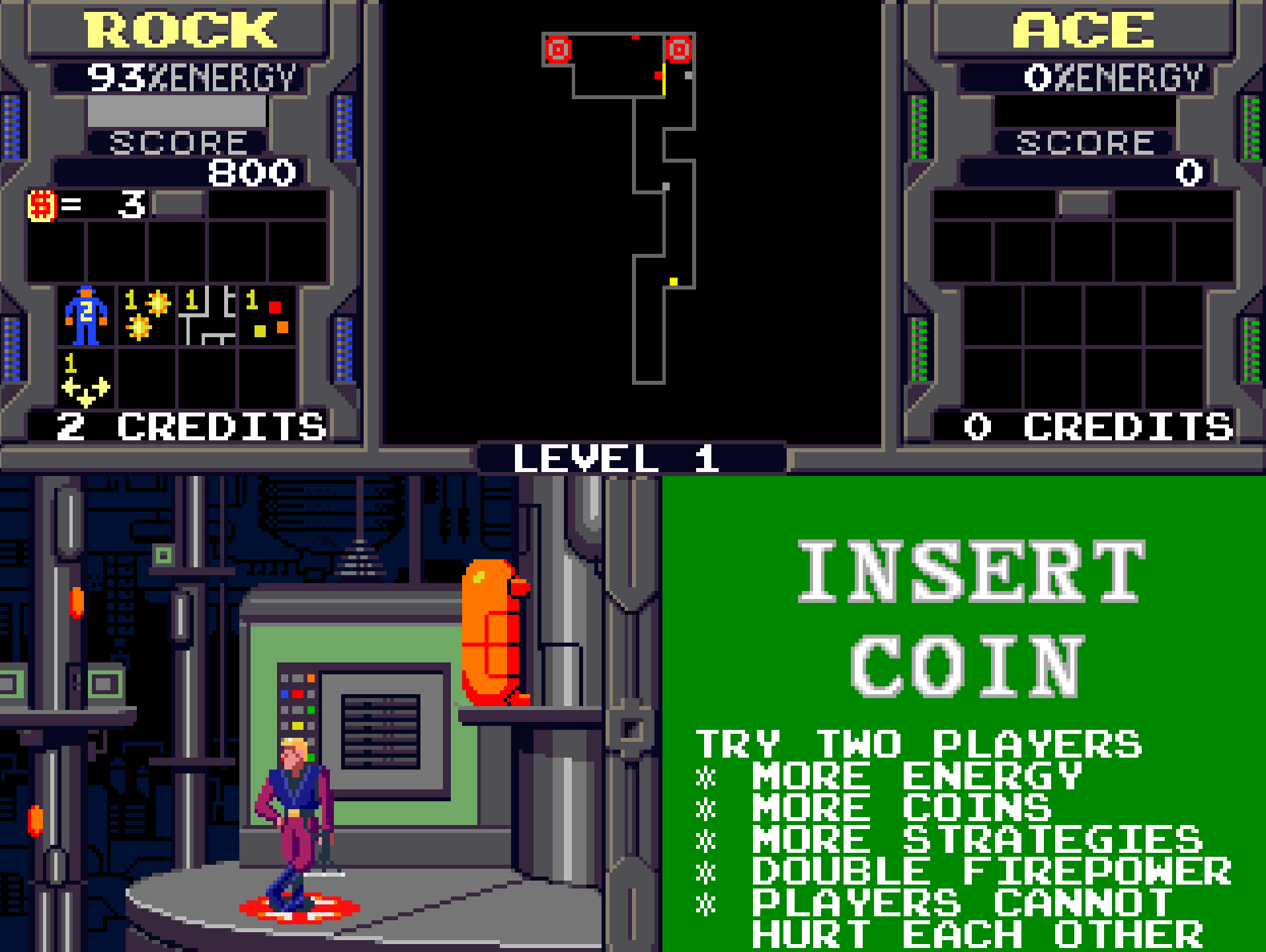 Players control either Major Rock Hardy or Captain Ace Gunn as they fight through a robotic labyrinth to destroy the evil Xybot forces.